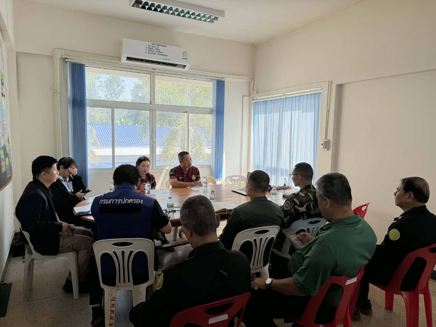 เมื่อ 4 ก.พ. 69 เวลา 09.00 - 10.00 น. ร้อย ตชด.344 มอบหมายให้ ว่าที่ ร.ต.ท.กุศล วงศ์ต่อม รอง สว.(ป.) กก.ตชด.34 เข้าร่วมประชุม กับ อำเภอท่าสองยาง เพื่อประชุม ผ่านสื่ออิเล็กทรอนิกส์ กับ กองอำนวยการป้องกันสาธารณภัย จังหวัดตาก เพื่อติดตามสถานการณ์ไฟป่า หมอกควัน และฝุ่นขนาดเล็ก (MP 2.5) ในพื้นที่จังหวัดตาก โดยมี นายชูศักดิ์ รู้ยิ่ง  ผวจ.ตาก เป็นประธาน ในพิธี ในส่วนของ อำเภอท่าสองยาง มี  พ.อ.อ.ภูวดล เค้าคลึง ปลัดอำเภอหัวหน้ากลุ่มความมั่งคง อำเภอท่าสองยาง เป็นประธานในพิธี พร้อมหัวหน้าส่วนราชการในพื้นที่ฯ  เข้าร่วมประชุม จำนวน 16 คน