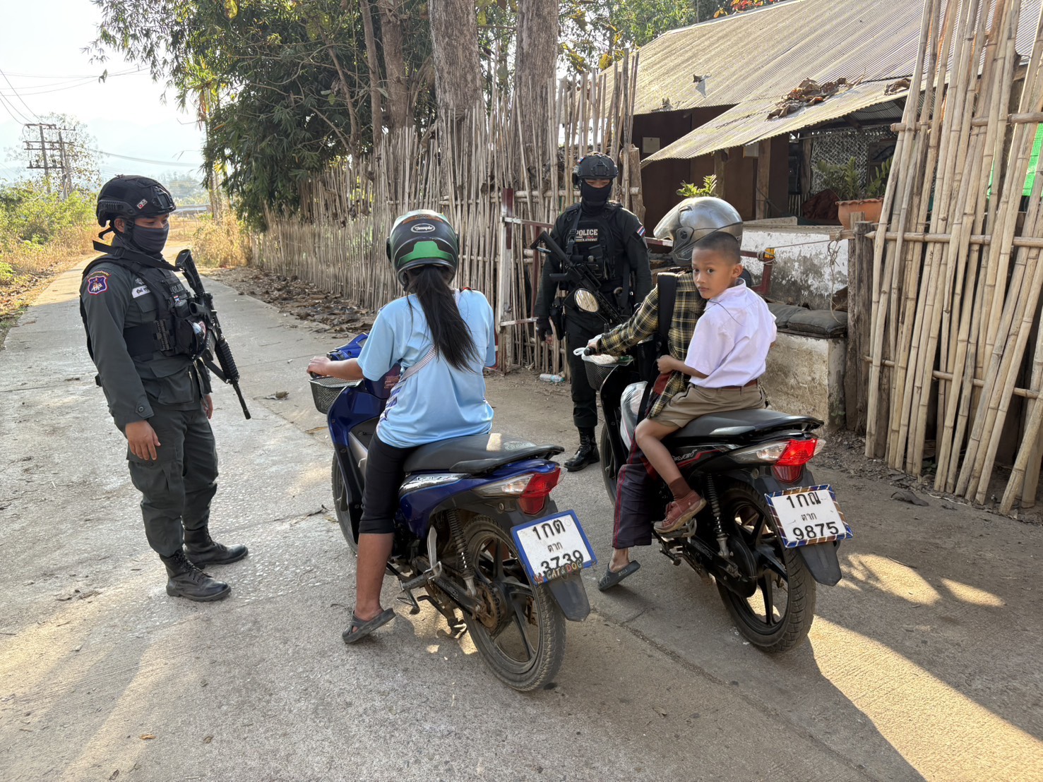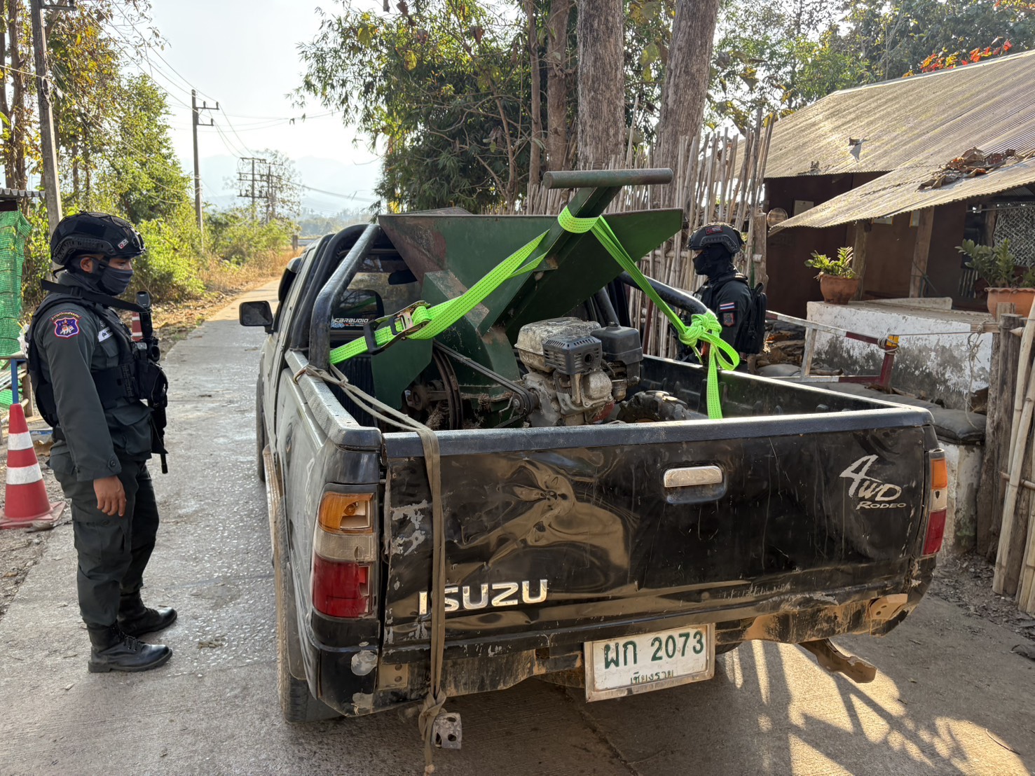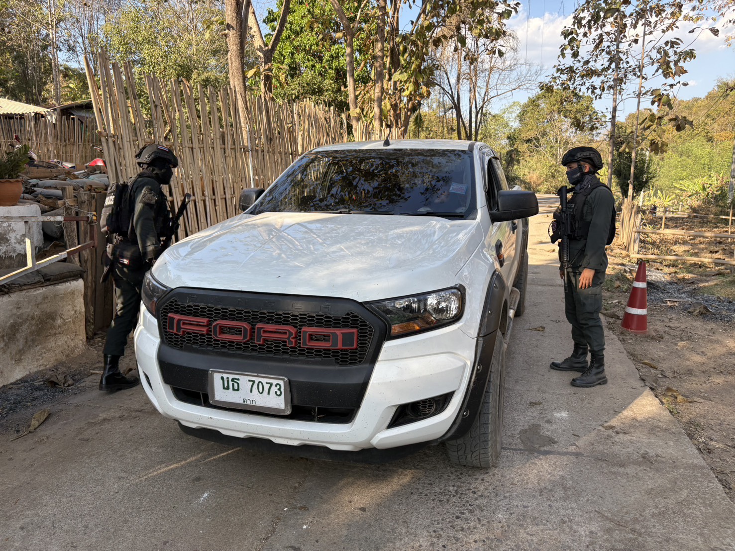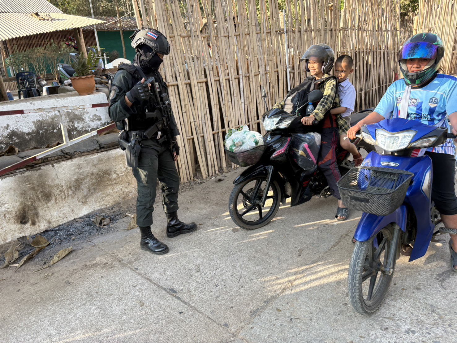 เมื่อ 121500 ก.พ. 69 มว.ตชด.3443 จัดให้ ส.ต.ต.อธิวัฒน์ เก่งสาร สิบเวรฯ พร้อม กพ. รวม 3 นาย ตั้งจุดตรวจ/จุดสกัด บริเวณหน้าฐาน ปบ.ห้วยปางยาง ม.2 ต.แม่ต้าน อ.ท่าสองยาง จว.ตาก และออกตรวจในพท.ฯ ม.1,ม.2 ต.แม่ต้าน อ.ท่าสองยาง จว.ตาก ตามเส้นทาง/ช่องทาง/ท่าข้ามและ พท.สุ่มเสี่ยงก่ออาชญากรรม เพื่อ ตรวจสอบ /ป้องกัน /ป้องปราม การลักลอบนําเข้า - ส่งออก ของโค ,สุกร ,พืชผลทางการเกษตร ,แรงงานต่างด้าว ,เฝ้าระวังการรุกล้ำอธิปไตย ของ กกล. ต่างชาติ และการกระทำผิดตาม พรบ. ที่มีโทษทางอาญา ตรวจสอบเครือข่ายแก็งคอลเซ็นเตอร์ฯ เพื่อป้องกันการลักลอบเข้า/ออกราชอาณาจักรโดยผิดกฎหมาย การลักลอบขนน้ำมันเชื้อเพลิงออกนอกราชอาณาจักร ป้องกันการลักลอบลำเลียงยาเสพติด สารตั้งต้น และเคมีภัณฑ์