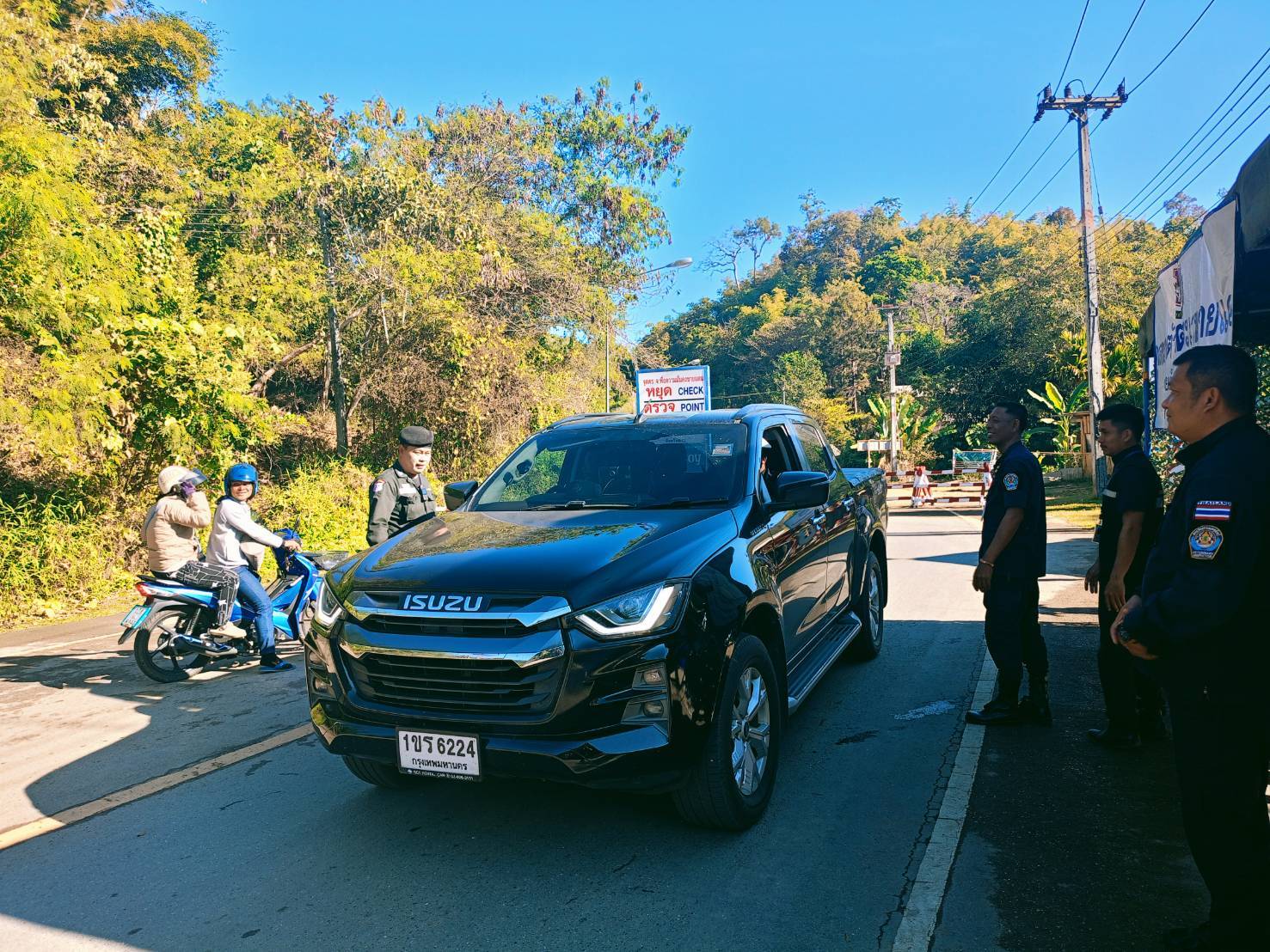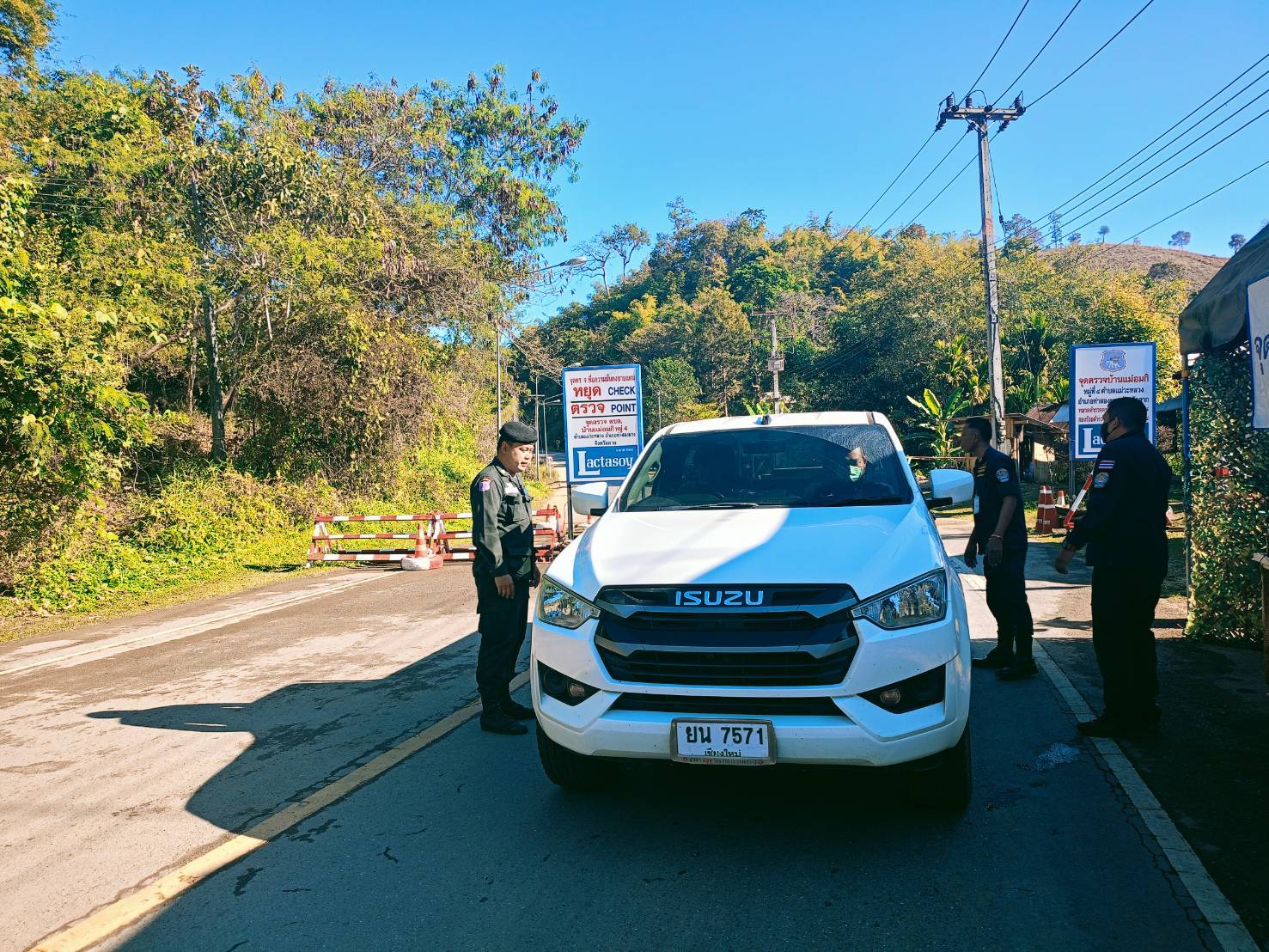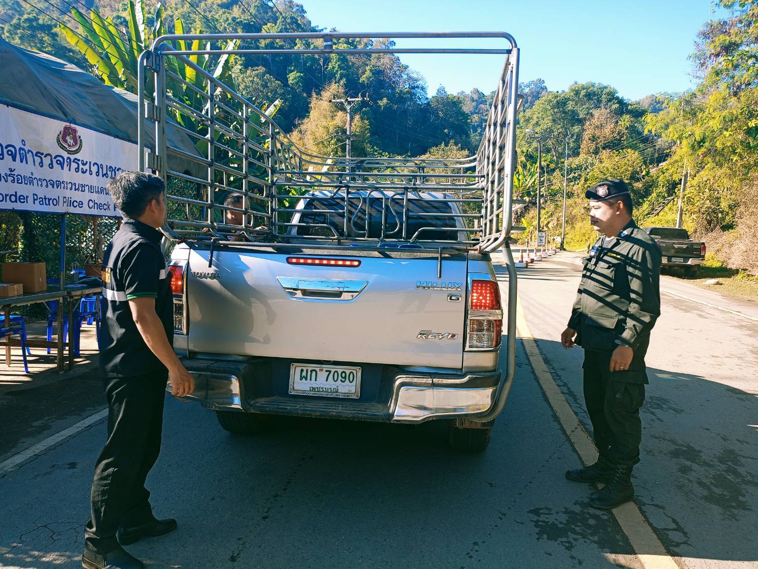 เมื่อ 130800-140759 ก.พ.69 ชฝต.บ้านแม่อมกิจัด กพ 3 นาย ร่วมกับ เจ้าหน้าที่สารวัตรปศุสัตว์ จ.จันทบุรี ทำการตั้งจุดตรวจ-จุดสกัด บนทางหลวงหมายเลข 105 (แม่สอด-แม่สะเรียง) บริเวณหน้าจุดตรวจบ้านแม่อมกิ ม.4 ต.แม่วะหลวง อ.ท่าสองยาง จ.ตาก เพื่อป้องกันปราบปรามอาชญากรรมสำคัญ การลักลอบลำเลียงยาเสพติด สารตั้งต้นและเคมีภัณฑ์,การปราบปรามคนร้ายข้ามชาติและเข้าเมืองโดยผิดกฎหมาย ป้องกันและควบคุมการลักลอบเคลื่อนย้ายสัตว์และซากสัตว์ ประชาสัมพันธ์ให้ประชาชนได้รับทราบ