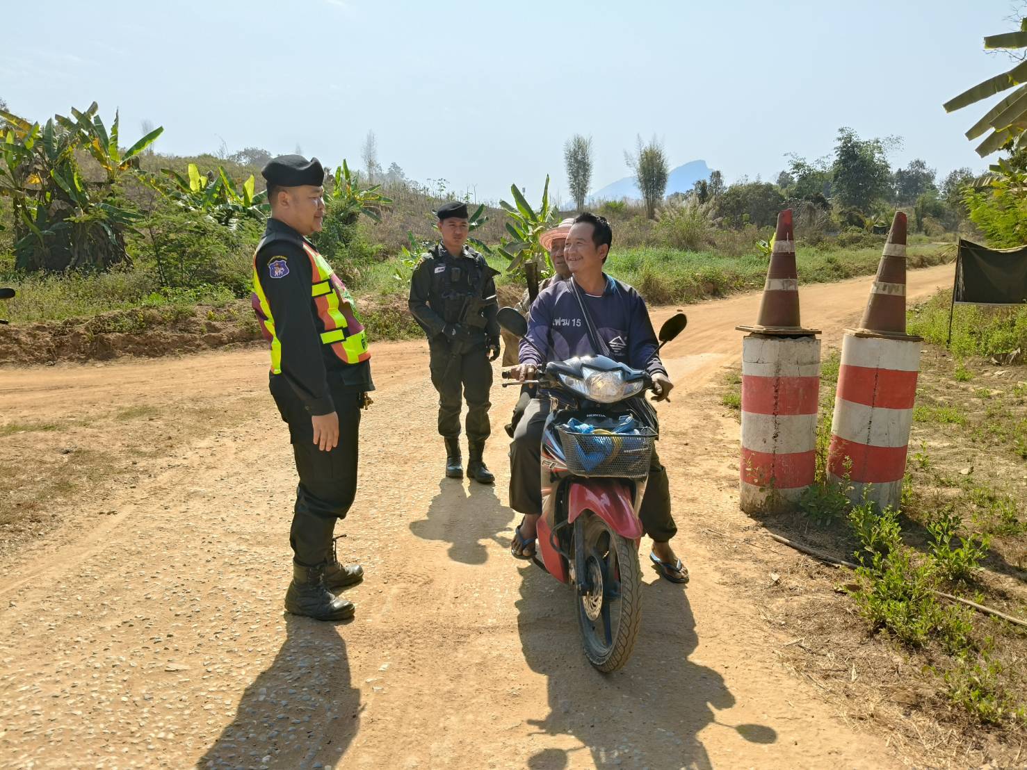 เมื่อ 140930 ก.พ.69 ส.ต.อ.เมธี  ชาลี พร้อมกำลังพล มว.ตชด.3442 รวม 3 นาย ตั้งจุดตรวจ/จุดสกัดกั้นชั่วคราว และ ลว.หาข่าว เพื่อป้องปรามการกระทำผิดกฎหมายตาม พ.ร.บ.ที่มีโทษทางอาญา สกัดกั้นกลุ่มขบวนการนำพาแรงงานต่างด้าวหลบหนีเข้าเมืองอย่างผิดกฏหมาย ป้องกันการลักลอบลำเลียงยาเสพติด สารตั้งต้น-เคมีภัณฑ์ ออกนอกราชอาณาจักร ติดตามการก่อสร้างอาคารของกลุ่มสแกมเมอร์(สมม.)บริเวณหน้าฐานปฏิบัติการบ้านแม่หละยาง หมู่ 2  ต.แม่หละ  อ.ท่าสองยาง  จว.ตาก  ผลการปฏิบัติไม่พบการกระทำผิดกฎหมายแต่อย่างใด