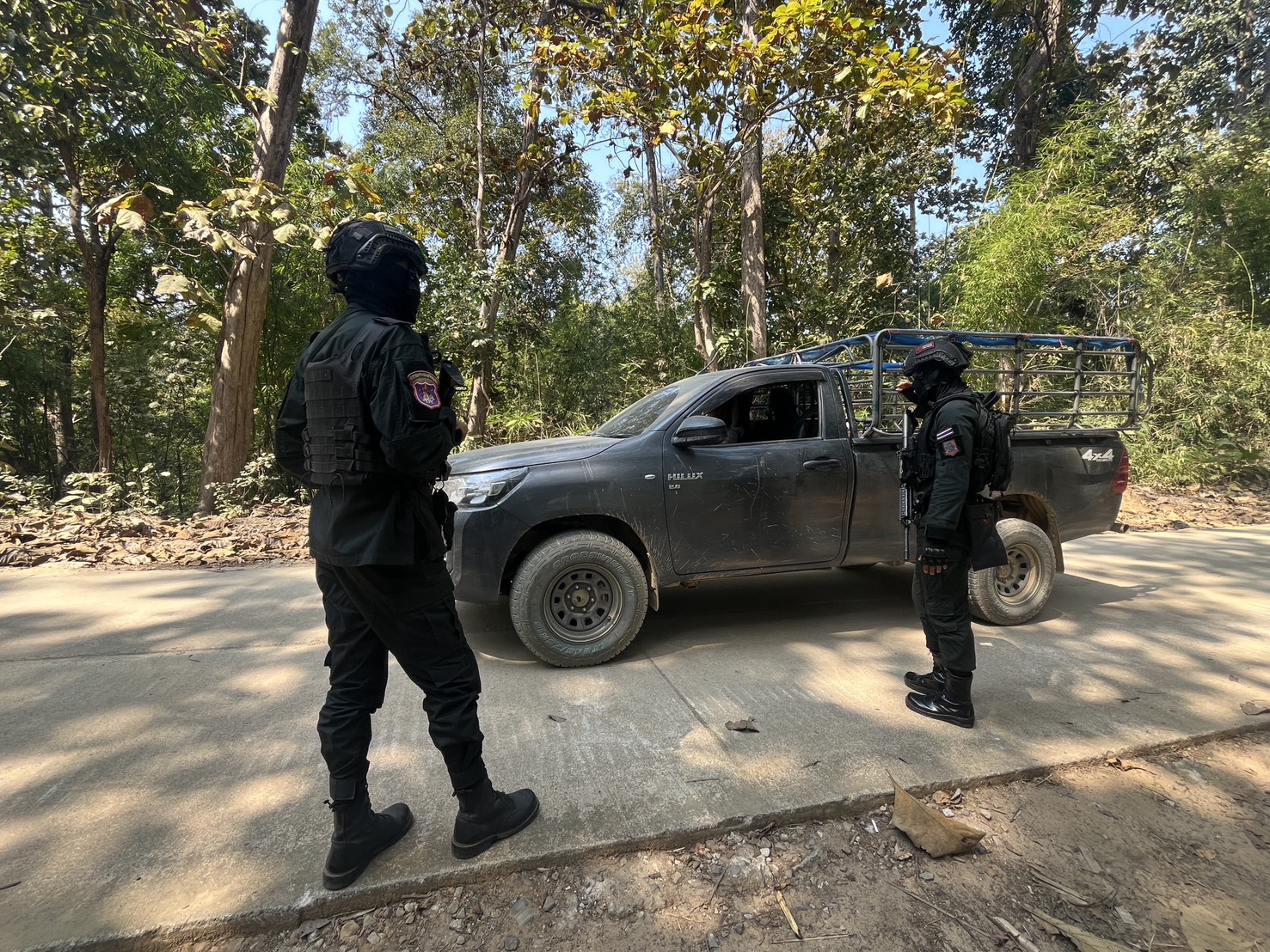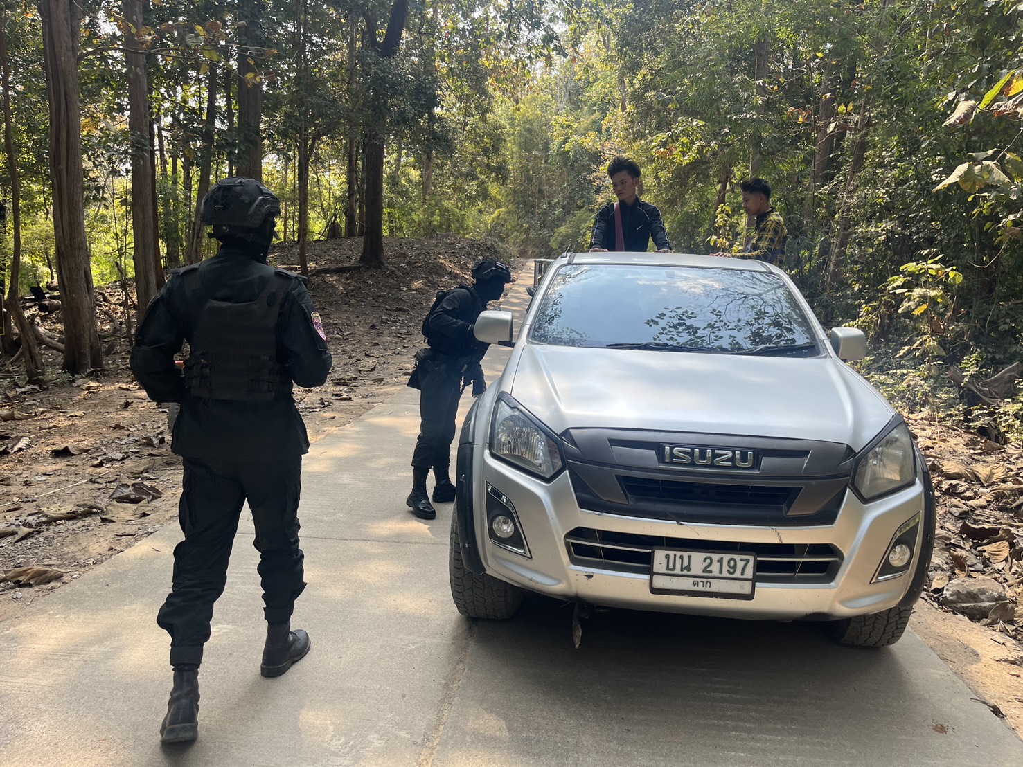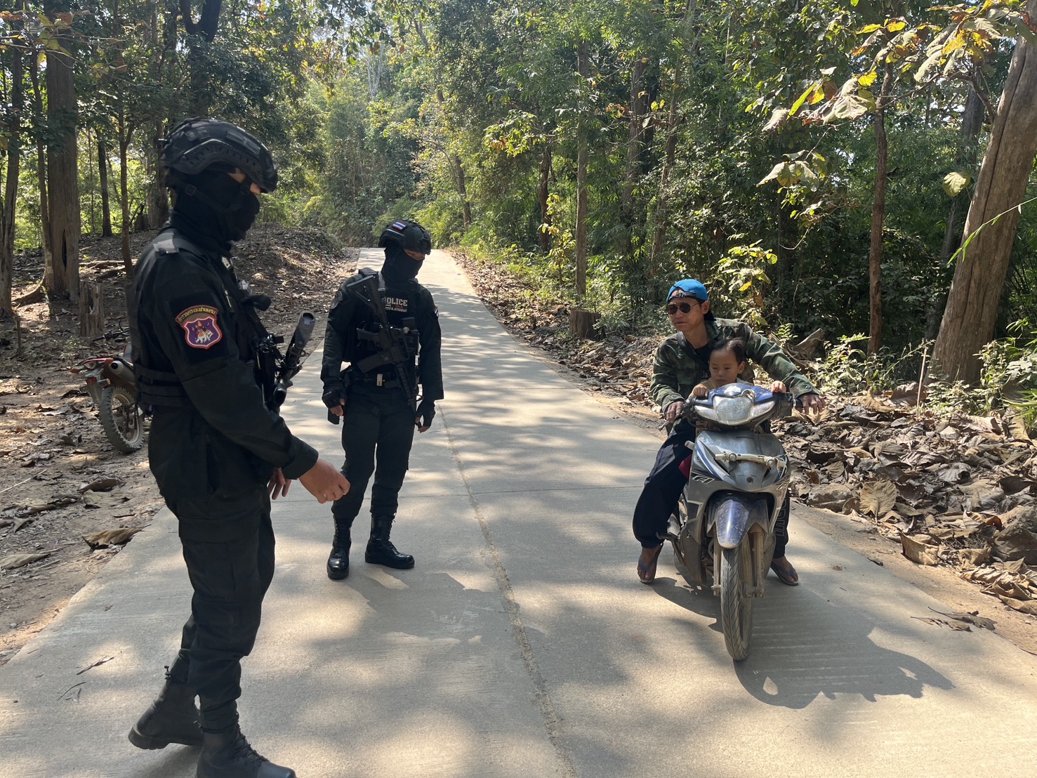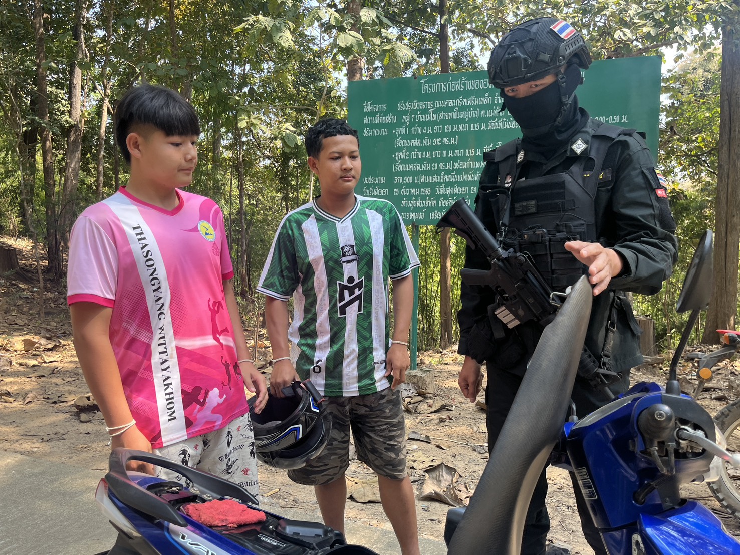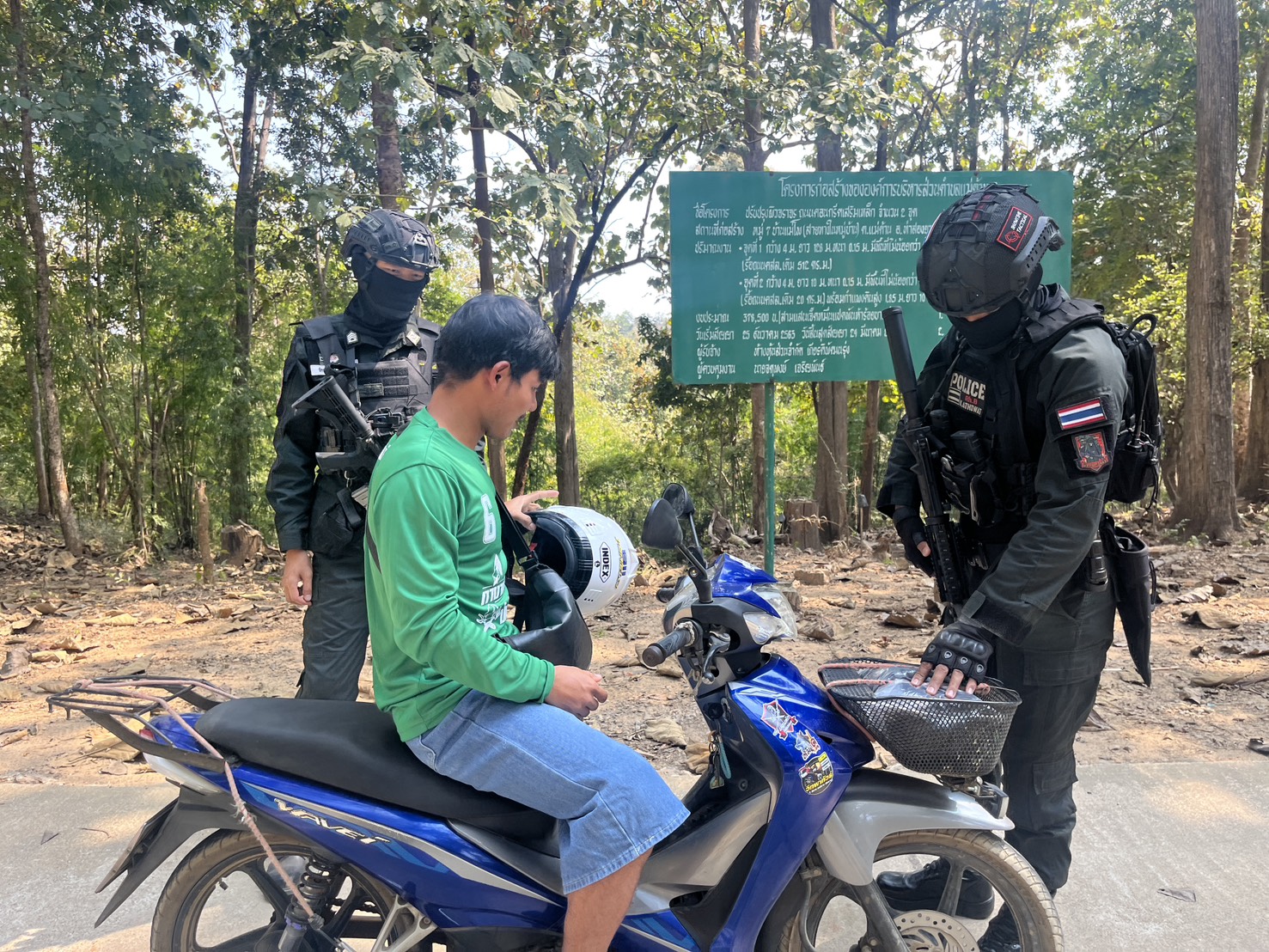 เมื่อ 141300 ก.พ. 69 มว.ตชด.3443 จัดให้ จ.ส.ต.จักรกฤษณ์ ซ้อนเพชร พร้อม กพ. รวม 3 นาย ตั้งจุดสกัด บริเวณเส้นทางรอง บ.เเม่ต้าน ม.1 - บ้านแม่โพ ม.7 ต. แม่ต้าน อ.ท่าสองยาง จ.ตาก พร้อมออกตรวจใน พท.ฯ ม.2 ต.แม่ต้าน อ.ท่าสองยาง จ.ตาก ตามเส้นทาง/ช่องทาง/ท่าข้ามและ พท.สุ่มเสี่ยงก่ออาชญากรรม เพื่อ ตรวจสอบ /ป้องกัน /ป้องปราม การลักลอบนําเข้า - ส่งออก ของโค ,สุกร ,พืชผลทางการเกษตร ,แรงงานต่างด้าว ,เฝ้าระวังการรุกล้ำอธิปไตย ของ กกล. ต่างชาติ และการกระทำผิดตาม พรบ. ที่มีโทษทางอาญา ตรวจสอบเครือข่ายแก็งคอลเซ็นเตอร์ฯ เพื่อป้องกันการลักลอบเข้า/ออกราชอาณาจักรโดยผิดกฎหมาย การลักลอบขนน้ำมันเชื้อเพลิงออกนอกราชอาณาจักร ป้องกันการลักลอบลำเลียงยาเสพติด สารตั้งต้น และเคมีภัณฑ์