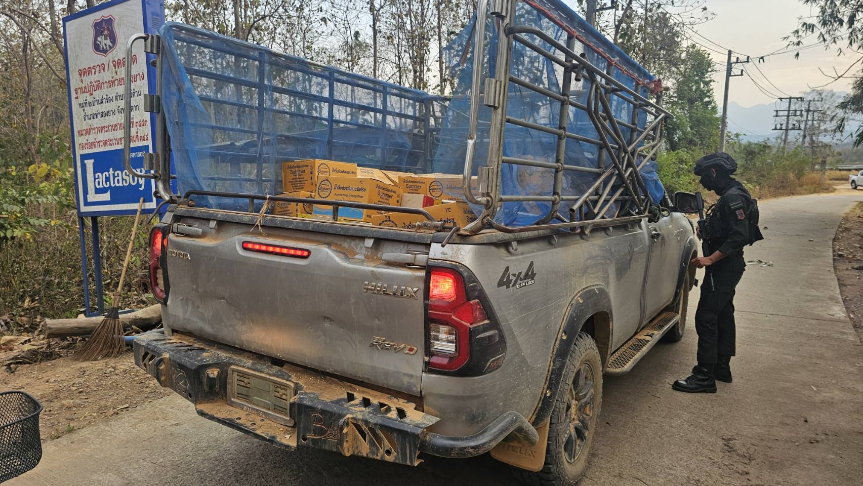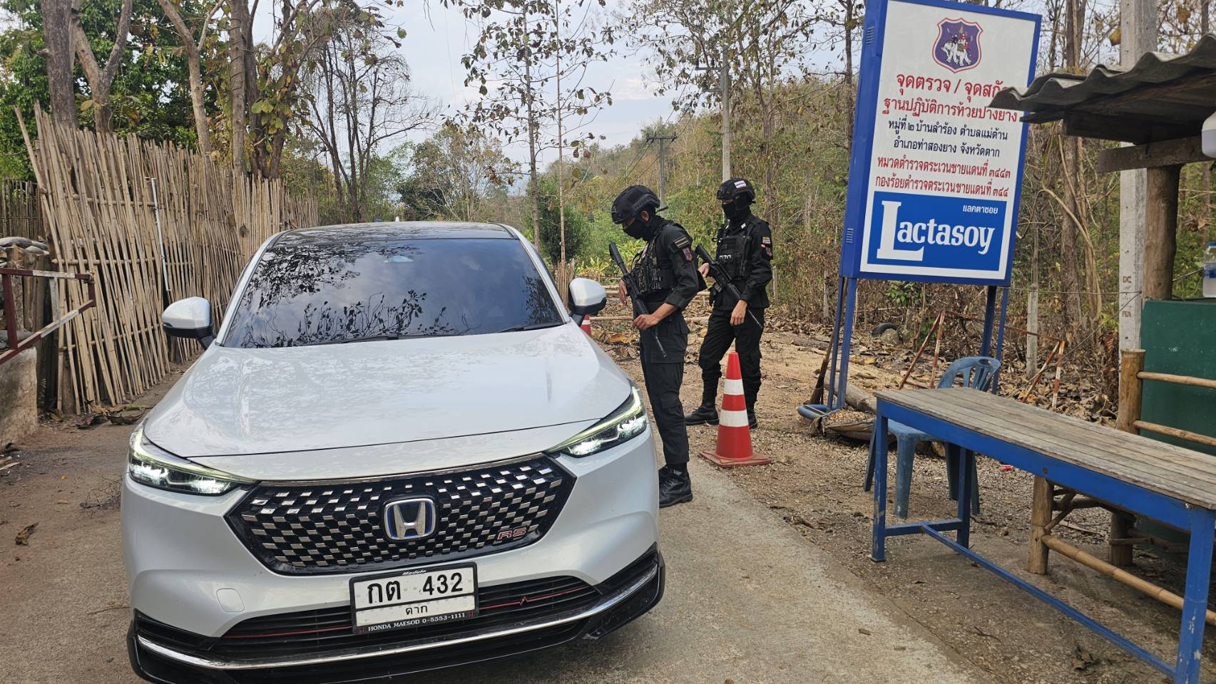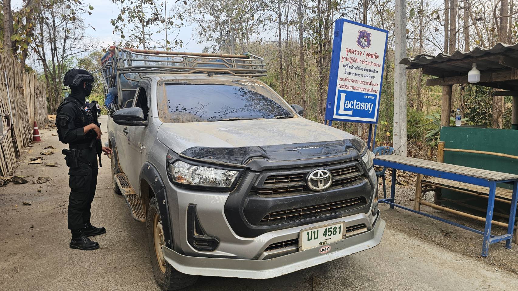 เมื่อ 241600 ก.พ. 69 มว.ตชด.3443 จัด กพ. 1 ชป. ตั้งจุดตรวจ/จุดสกัด บริเวณหน้าฐาน ปบ.ห้วยปางยาง ม.2 ต.แม่ต้าน อ.ท่าสองยาง จว.ตาก เพื่อ ตรวจสอบ /ป้องกัน /ป้องปราม การลักลอบนําเข้า - ส่งออก ของโค ,สุกร ,พืชผลทางการเกษตร ,แรงงานต่างด้าว ,เฝ้าระวังการรุกล้ำอธิปไตย ของ กกล. ต่างชาติ และการกระทำผิดตาม พรบ. ที่มีโทษทางอาญา ตรวจสอบเครือข่ายแก็งคอลเซ็นเตอร์ฯ เพื่อป้องกันการลักลอบเข้า/ออกราชอาณาจักรโดยผิดกฎหมาย การลักลอบขนน้ำมันเชื้อเพลิงออกนอกราชอาณาจักร ป้องกันการลักลอบลำเลียงยาเสพติด สารตั้งต้น และเคมีภัณฑ์