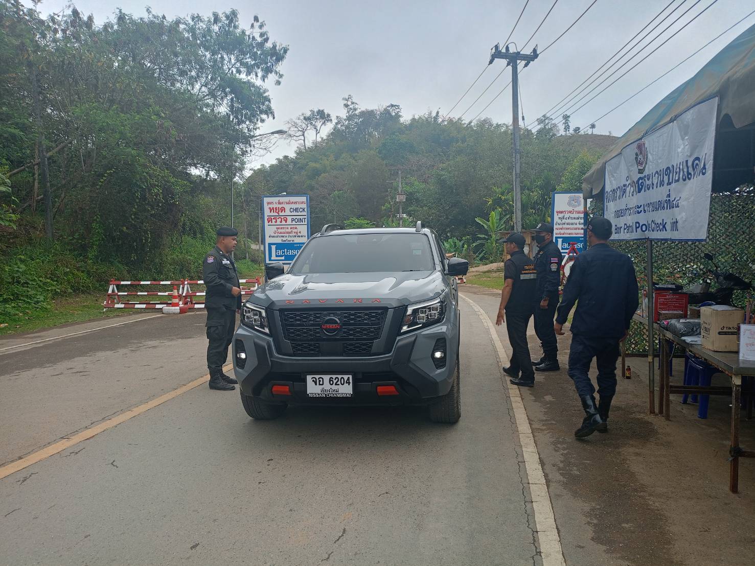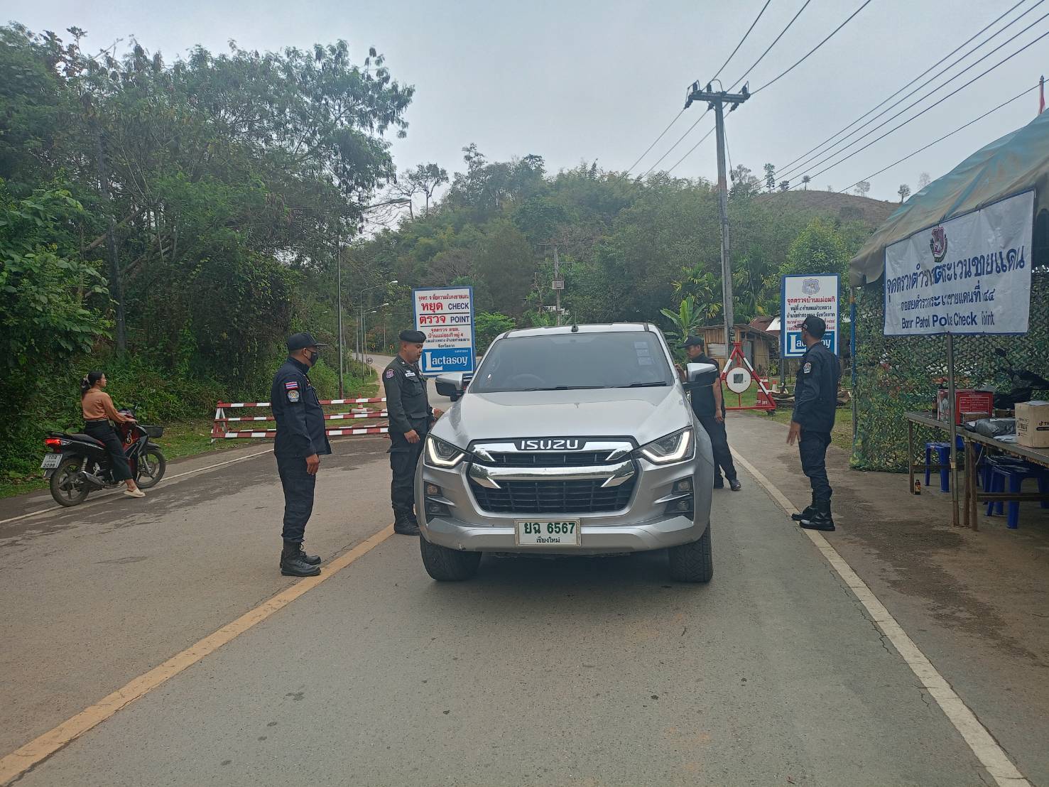 เมื่อ 260800 - 270759 ก.พ. 69 ชฝต.บ้านแม่อมกิจัด กพ.3 นาย ร่วมกับ เจ้าหน้าที่สารวัตรปศุสัตว์ จ.จันทบุรี ทำการตั้งจุดตรวจ-จุดสกัด บนทางหลวงหมายเลข 105 (แม่สอด-แม่สะเรียง) บริเวณหน้าจุดตรวจบ้านแม่อมกิ ม.4 ต.แม่วะหลวง อ.ท่าสองยาง จ.ตาก เพื่อป้องกันปราบปรามอาชญากรรมสำคัญ การลักลอบลำเลียงยาเสพติด สารตั้งต้นและเคมีภัณฑ์,การปราบปรามคนร้ายข้ามชาติและเข้าเมืองโดยผิดกฎหมาย ป้องกันและควบคุมการลักลอบเคลื่อนย้ายสัตว์และซากสัตว์ ประชาสัมพันธ์ให้ประชาชนได้รับทราบ