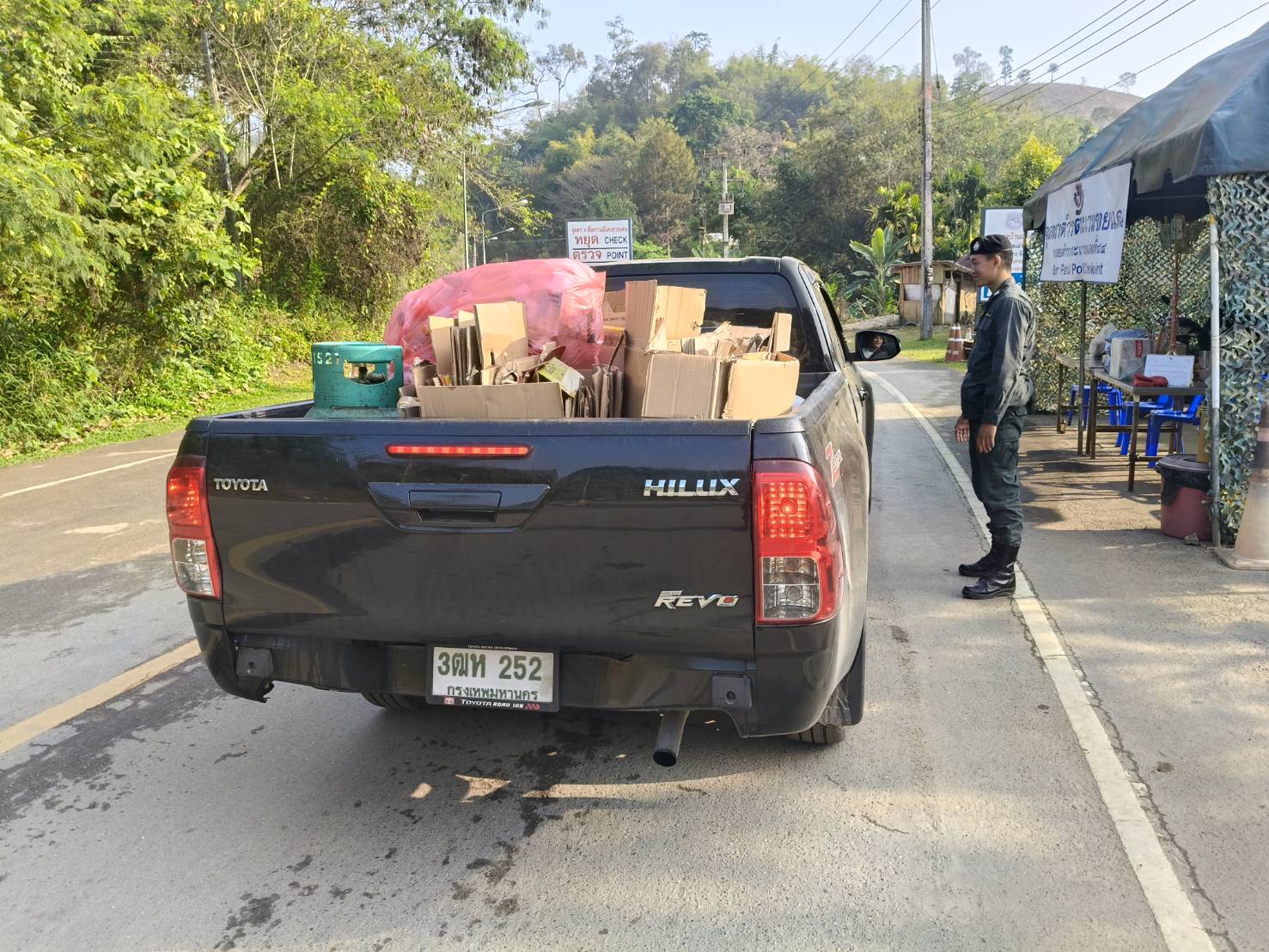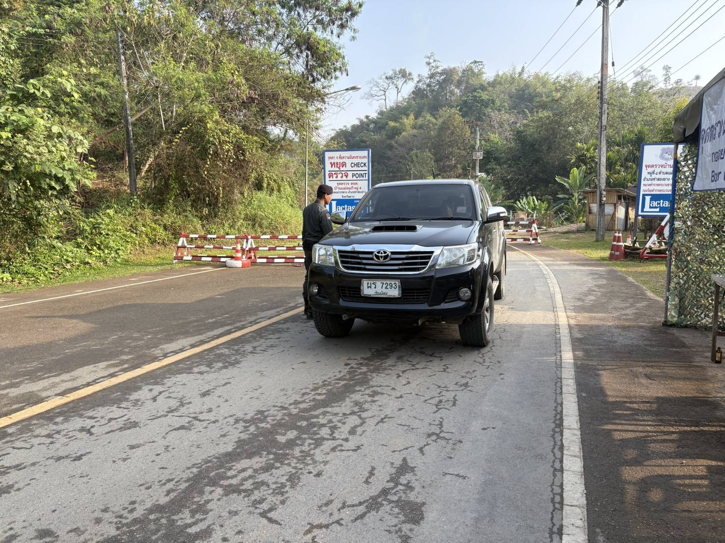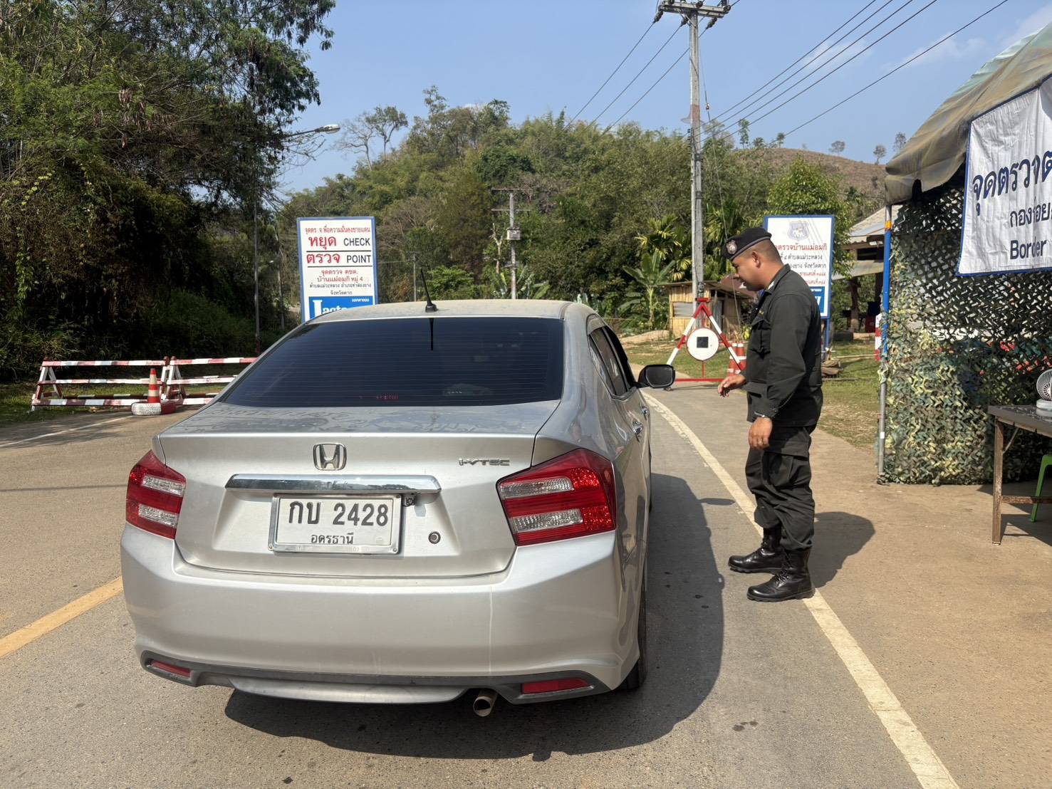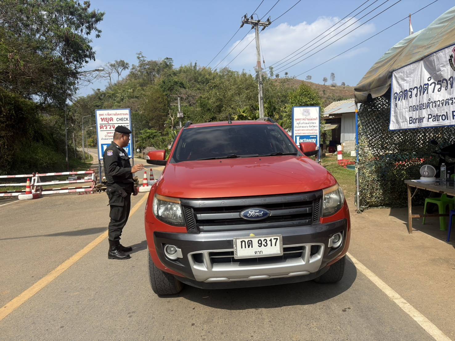 เมื่อ 280800 - 010759 มี.ค.69 ชฝต.บ้านแม่อมกิจัด กพ. 3 นายทำการตั้งจุดตรวจ-จุดสกัด บนทางหลวงหมายเลข 105 (แม่สอด-แม่สะเรียง) บริเวณหน้าจุดตรวจบ้านแม่อมกิ ม.4 ต.แม่วะหลวง อ.ท่าสองยาง จ.ตาก เพื่อป้องกันปราบปรามอาชญากรรมสำคัญ การลักลอบลำเลียงยาเสพติด สารตั้งต้นและเคมีภัณฑ์,การปราบปรามคนร้ายข้ามชาติและเข้าเมืองโดยผิดกฎหมาย ป้องกันและควบคุมการลักลอบเคลื่อนย้ายสัตว์และซากสัตว์ ประชาสัมพันธ์ให้ประชาชนได้รับทราบ