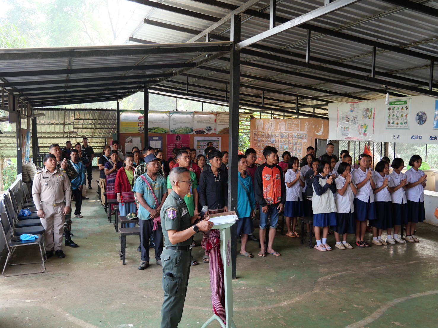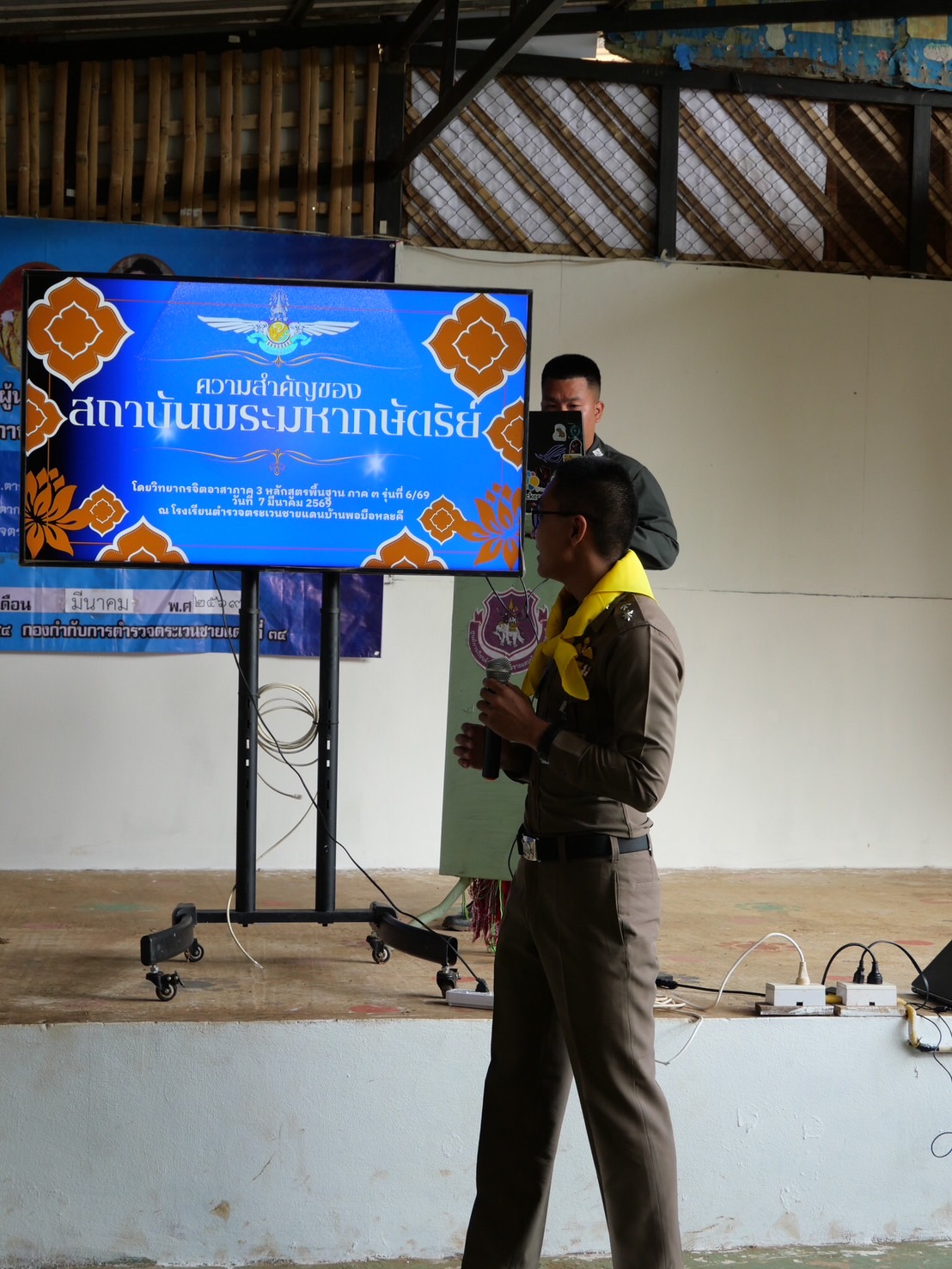 เมื่อ 07 มี.ค.69 เวลา 09.30 - 13.00 น. ร.ต.ท.ธนพนธ์ บุญสุข รอง ผบ.ร้อย ตชด.344 พร้อม ขรก.ตร.ร้อย ตชด.344 จำนวน 8 นาย เดินทางไปตรวจเยี่ยม ศกร.ตชด.บ้านพอบือละคี ฯ  พบ ดต.ธีรชาติ   คีรีไพศาล ครูใหญ่ พร้อมคณะครู ให้การต้อนรับ เสร็จการตรวจเยี่ยม ได้จัดการฝึกอบรมของผู้นำชุมชน ผู้นำธรรมชาติ ประชาชน เยาวชน โครงการสร้างจิตสำนึกต่อสถาบันพระมหากษัตริย์ไตรมาสที่ 1 - 2 ประจำปี 2569 จำนวน 4 หมู่บ้าน ณ ศกร.ตชด.บ้านพอบือละคี หมู่ที่ 4 ต.แม่สอง อ.ท่าสองยาง จ.ตาก มีประชนชนเข้าร่วมอบรมฯ จำนวน 80 คน