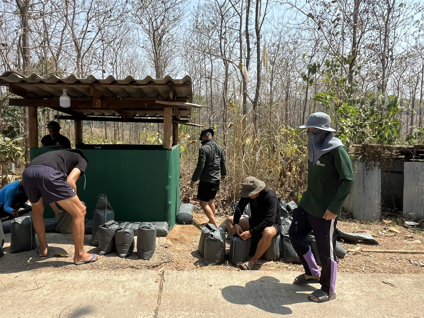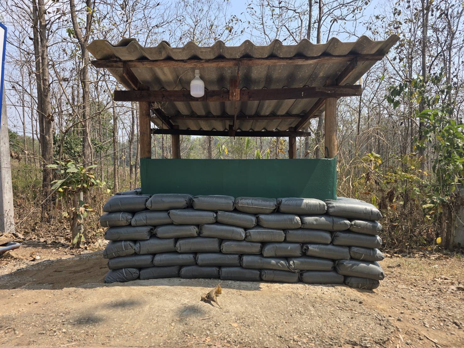 - เรียงกระสอบทรายเเทนรับความเคารพ,ป้อมยาม เเล้วเสร็จ