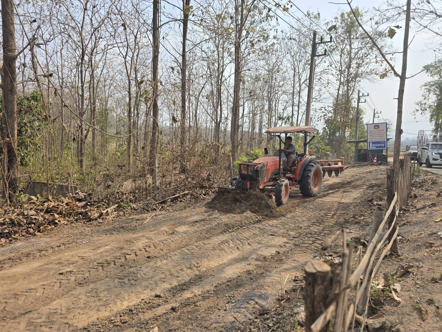 - ปรับพื้นที่ไหล่ทาง(รถไถ)เเล้วเสร็จ