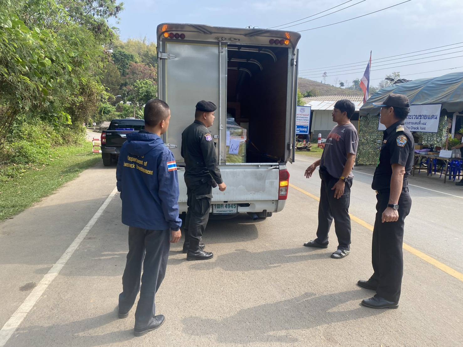 เมื่อ 130800 - 140559 - 14 มี.ค. 69 ชฝต.บ้านแม่อมกิ​จัด กพ. 3 นาย ร่วมกับ เจ้าหน้าที่สารวัตรปศุสัตว์ จ.จันทบุรี ทำการตั้งจุดตรวจ-จุดสกัด บนทางหลวงหมายเลข 105 (แม่สอด-แม่สะเรียง) บริเวณหน้าจุดตรวจบ้านแม่อมกิ ม.4 ต.แม่วะหลวง อ.ท่าสองยาง จ.ตาก เพื่อป้องกันปราบปรามอาชญากรรมสำคัญ การลักลอบลำเลียงยาเสพติด สารตั้งต้นและเคมีภัณฑ์,การปราบปรามคนร้ายข้ามชาติและเข้าเมืองโดยผิดกฎหมาย ป้องกันและควบคุมการลักลอบเคลื่อนย้ายสัตว์และซากสัตว์ ประชาสัมพันธ์ให้ประชาชนได้รับทราบ