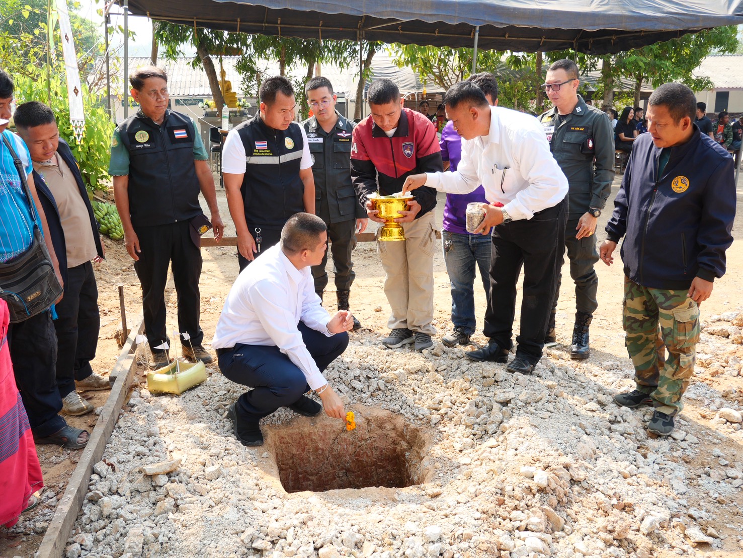 พ.ต.ต.พัชรพล อินเตจ๊ะ ผบ.ร้อย ตชด.344 พร้อมด้วยกำลังพล มว.ตชด.3442 รวม 4 นายได้เดินทางเข้าร่วมพิธีตั้งเสาสร้างโรงอาหาร รร.ตชด.จุฬา-ธรรมศาสตร์ 3