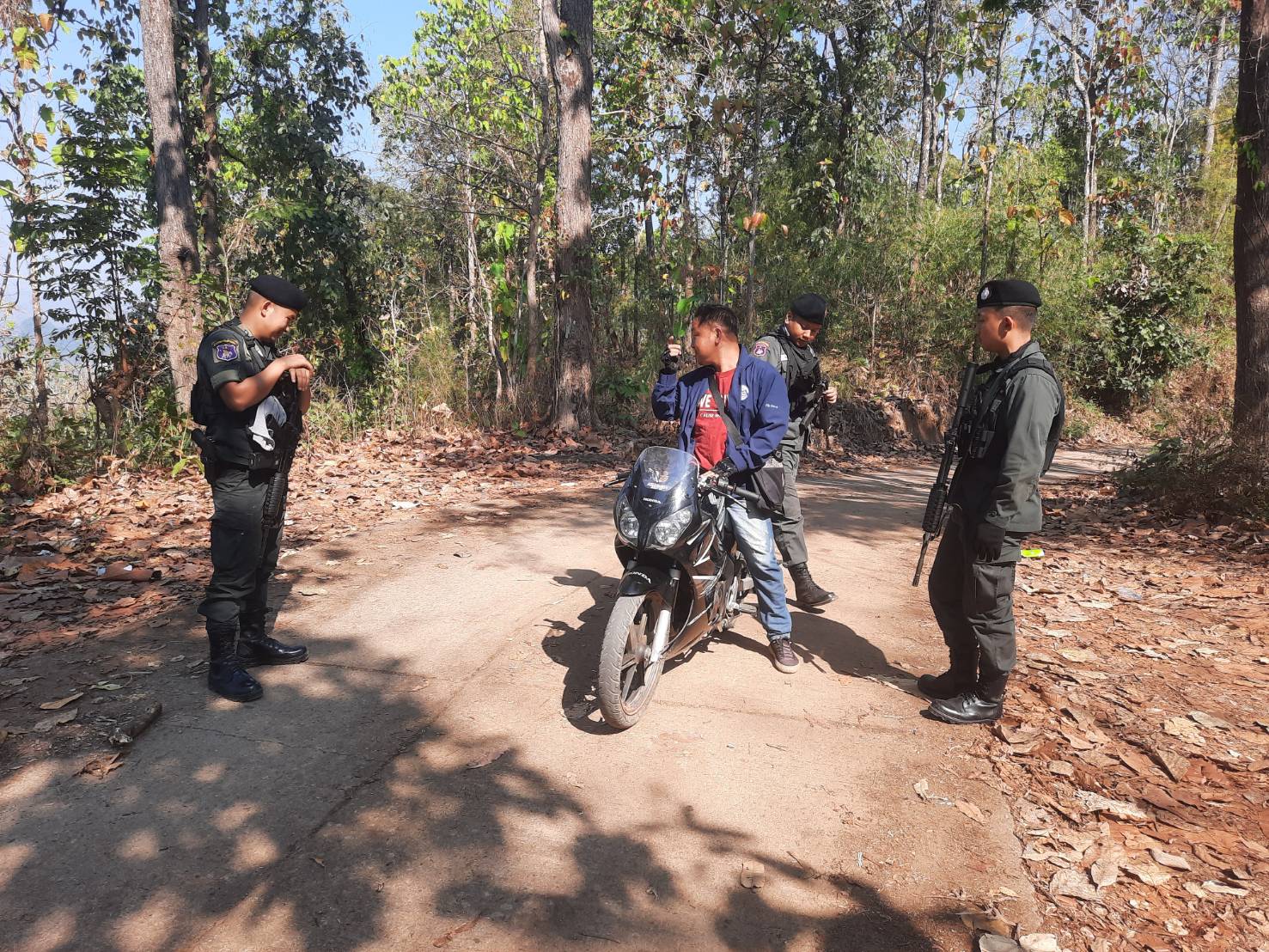 เมื่อ 180930 มี.ค.69 มว.ตชด.3444 จัดให้ จ.ส.ต.เอกชัย คำสินธุ์ พร้อม กพ. ใน มว.ฯ รวม 5 นาย ตั้งจุดตรวจ/จุดสกัด ในพื้นที่เส้นทางรอง พื้นที่สุ่มเสี่ยงล่อแหลม เพื่อป้องกัน สกัดกั้น การกระทำผิดกฎหมายตาม พ.ร.บ.ที่มีโทษทางอาญา ตรวจสอบป้องกันควบคุมการลักลอบเคลื่อนย้ายสัตว์ ซากสัตว์ ตรวจสอบเครือข่ายแก๊งคอลเซ็นเตอร์ เพื่อป้องกันการลักลอบ เข้า-ออก ราชอาณาจักรโดยผิดกฎหมาย ป้องกันการลักลอบลำเลียงยาเสพติด สารตั้งต้น เคมีภัณฑ์ ปราบปรามการค้าอาวุธสงคราม อาวุธปืนผิดกฎหมาย และการโจรกรรมรถข้ามแดน บริเวณถนนทางเข้าหมู่บ้านเชียงแก้ว หมู่ 8 ต.แม่อุสุ อ.ท่าสองยาง จ.ตาก