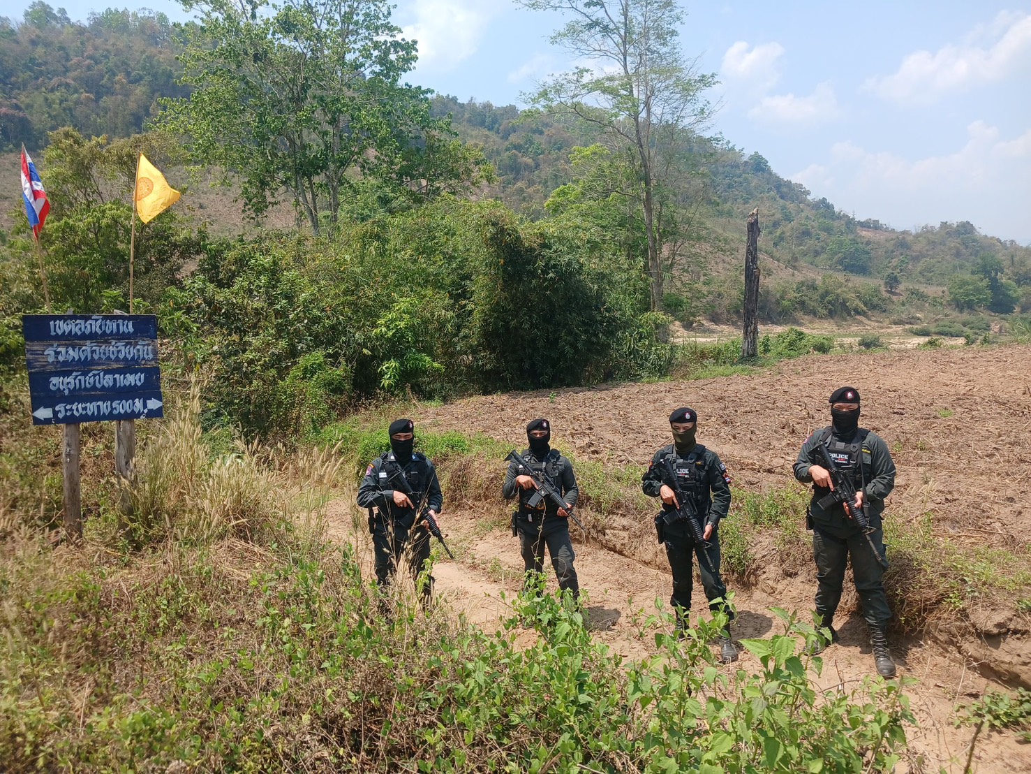 เมื่อ 191200 มี.ค. 69 มว.ตชด.3444 จัดให้ จ.ส.ต.เอกชัย คำสินธุิ์ พร้อม กพ. ใน มว.ฯ รวม 5 นายออก ลว.หาข่าวใน พื้นที่ เพื่อป้องกัน สกัดกั้น การกระทำผิดกฎหมายตาม พ.ร.บ.ที่มีโทษทางอาญา ตรวจสอบป้องกันควบคุมการลักลอบเคลื่อนย้ายสัตว์ ซากสัตว์ ตรวจสอบเครือข่ายแก๊งคอลเซ็นเตอร์ เพื่อป้องกันการลักลอบ เข้า-ออก ราชอาณาจักรโดยผิดกฎหมาย ป้องกันการลักลอบลำเลียงยาเสพติด สารตั้งต้น เคมีภัณฑ์ ปราบปรามการค้าอาวุธสงคราม อาวุธปืนผิดกฎหมาย และการโจรกรรมรถข้ามแดนตามช่องทางธรรมชาติ ท่าข้ามอุสุทะ ม.4 ต.แม่อุสุ อ.ท่าสองยางฯ พิกัด 47QMV1099310641, 47QMV1117010317 และ 47QMV1119310323