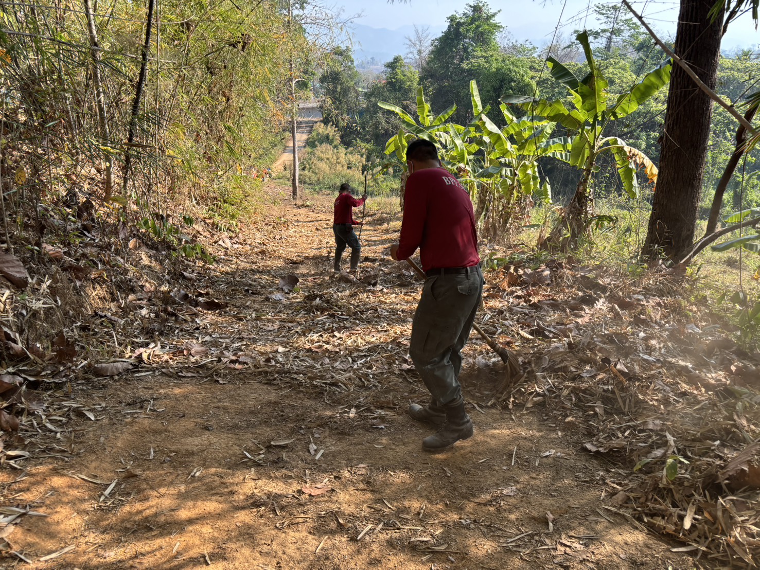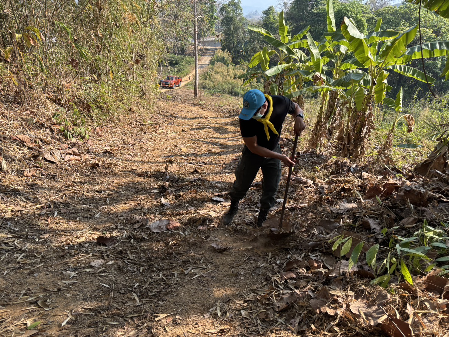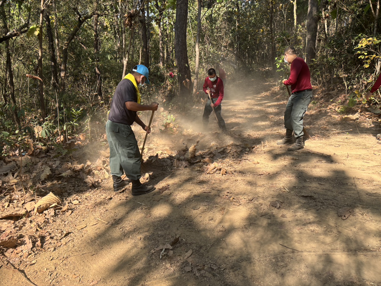 เมื่อ 20 มี.ค.69 เวลา 09.00 - 11.00 น. พ.ต.ต.พัชรพล อินเตจ๊ะ ผบ.ร้อย ตชด.344 จัดกำลังพลชุดจิตอาสาและชุดช่วยเหลือผู้ประสพภัย ร้อย ตชด.344 จำนวน 12 นาย ร่วมทำแนวกันไฟรอบบริเวณ กองร้อย ตชด.344 หมู่ 1 ต.แม่ต้าน อ.ท่าสองยาง จว.ตาก เนื่องจากช่วงนี้เป็นฤดูร้อนเพื่อป้องกันเหตุไฟไหม้ที่จะเกิดขึ้นในบริเวณกองร้อยและบ้านพักข้าราชการตำรวจ ระยะทางประมาณ 2 กม.