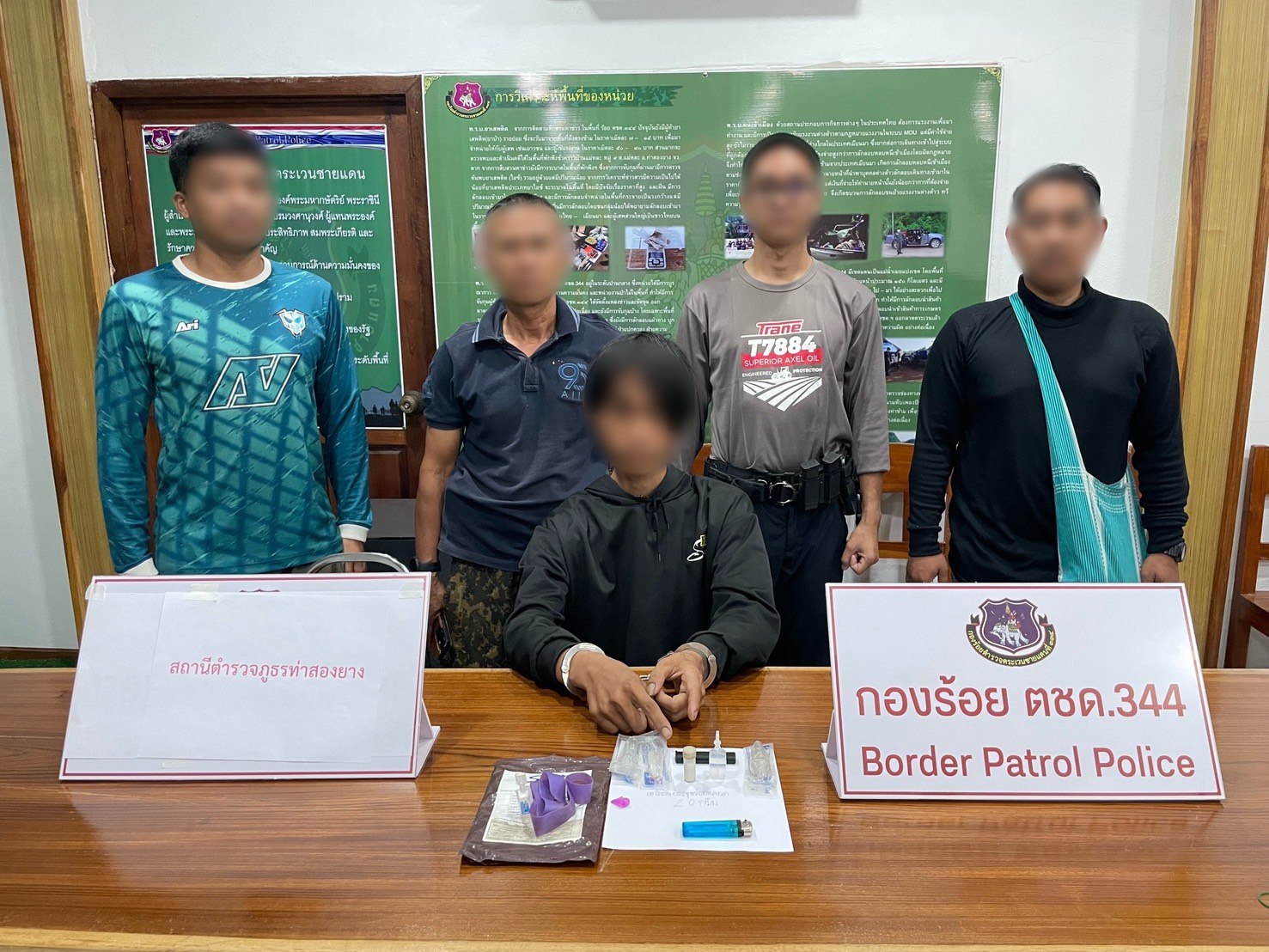 ภายใต้การอำนวยการของ พ.ต.อ.สุระสิทธิ์ สกุลพานิช ผกก.ตชด.34, พ.ต.ต.พัชรพล อินเตจ๊ะ ผบ.ร้อย ตชด.344 สั่งการให้ จนท.ชปข.ร้อย ตชด.344 นำโดย ร.ต.ท.สมจิตต์ สายชลคีรี พร้อม จนท.ชปข.ร้อย ตชด.344 รวม 5 นาย ร่วมกับ สภ.ท่าสองยาง ร่วมกันจับกุม นายบรรจบ อภิวาทนรศรี อายุ 21 ปี ที่อยู่ 27 ม.5 ต.แม่ต้าน อ.ท่าสองยาง จ.ตาก