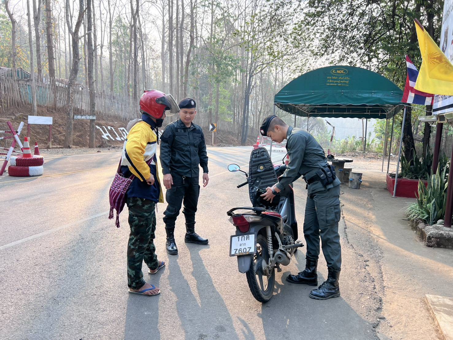 เมื่อ 270730 มี.ค.69 มว.ตชด.3444 จัดให้ ส.ต.ท.เกียรติคุณ เดชบัญชา พร้อม กพ.ใน มว.รวม 3 นาย ตั้งจุดตรวจ/จุดสกัด บนทางหลวงหมายเลข 105 (แม่สอด-แม่สะเรียง) บริเวณหน้าฐานปฏิบัติการบ้านวะแขระโกร ม.6 ต.แม่อุสุ อ.ท่าสองยาง จ.ตาก เพื่อป้องกันปราบปรามอาชญากรรมสำคัญ การลักลอบลำเลียงยาเสพติด สารตั้งต้นและเคมีภัณฑ์,การปราบปรามคนร้ายข้ามชาติและเข้าเมืองโดยผิดกฎหมาย ป้องกันและควบคุมการลักลอบเคลื่อนย้ายสัตว์และซากสัตว์