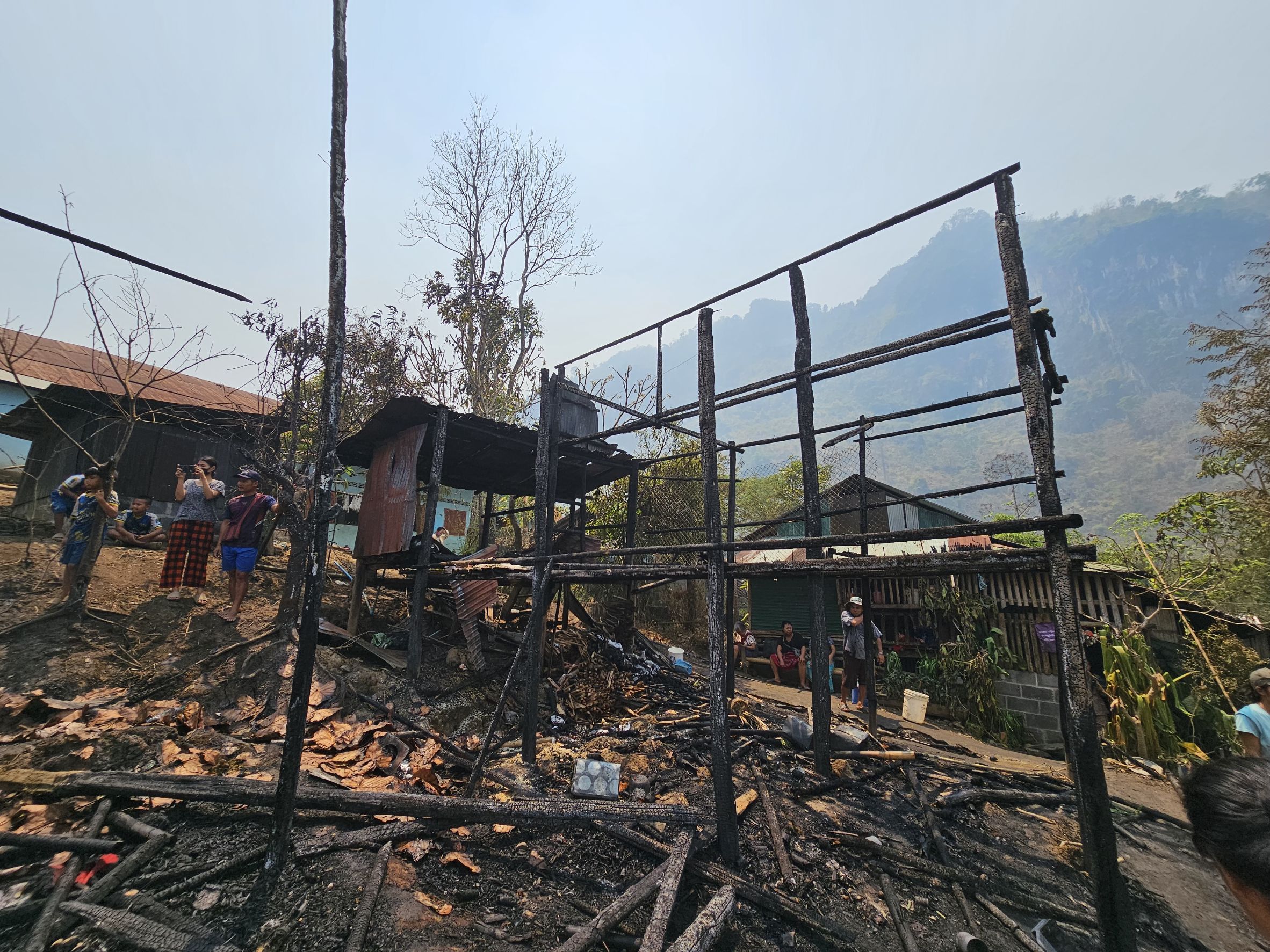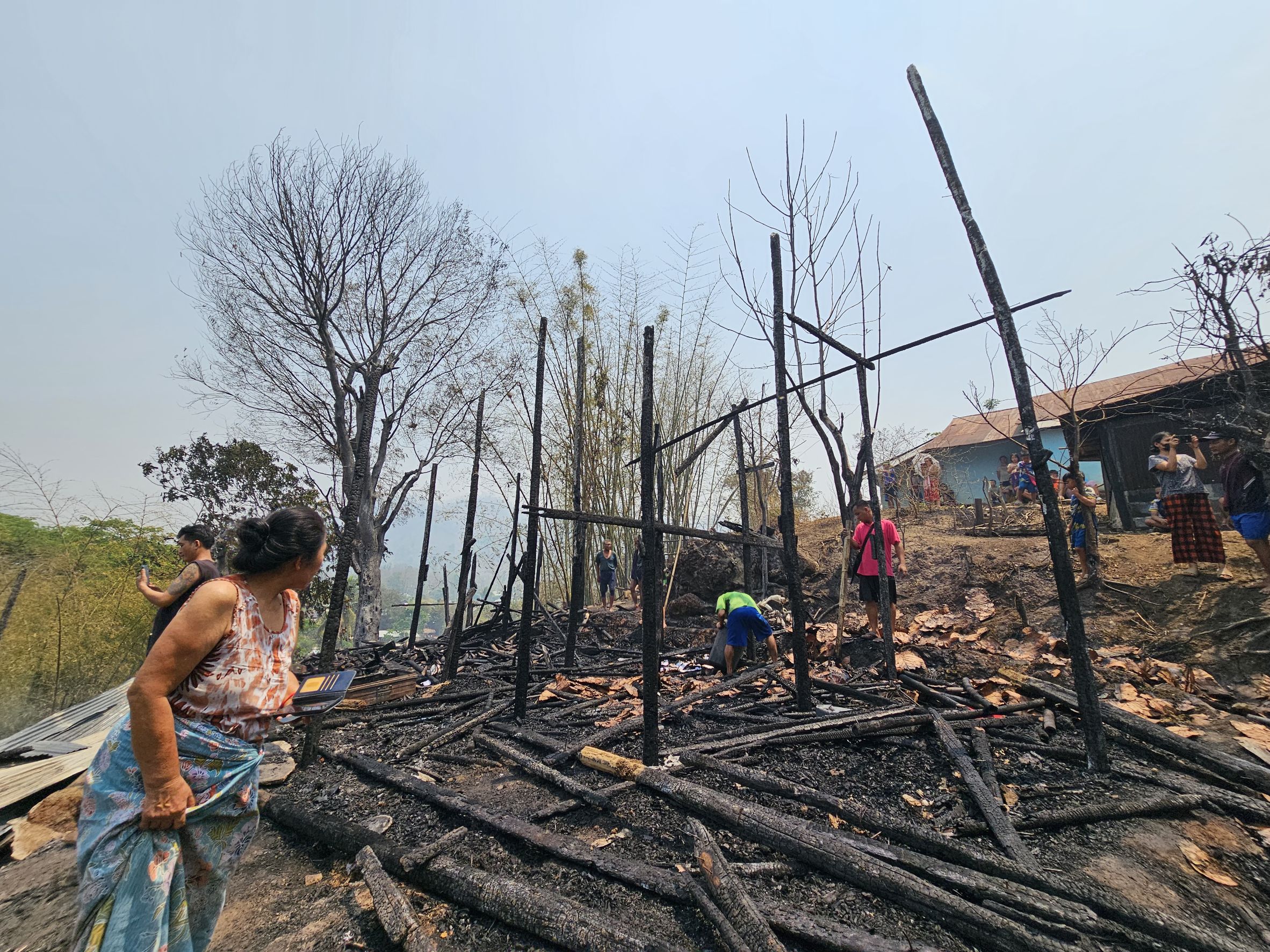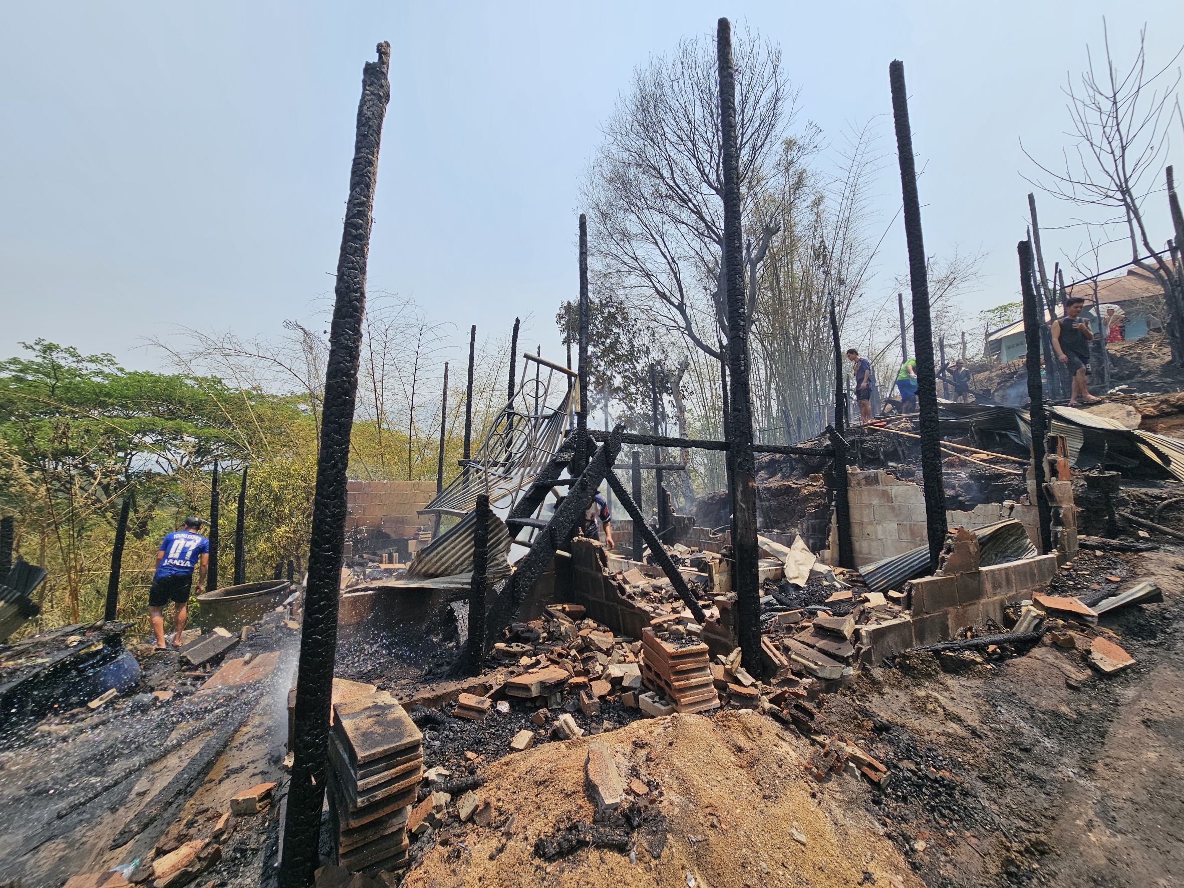 หลังที่ 7 ยังไม่ทราบบ้านเลขที่ (ไหม้ทั้งหลัง) มี นางเทเทวิน ไม่มีนามสกุล อายุ 32 ปี เป็นเจ้าของบ้าน