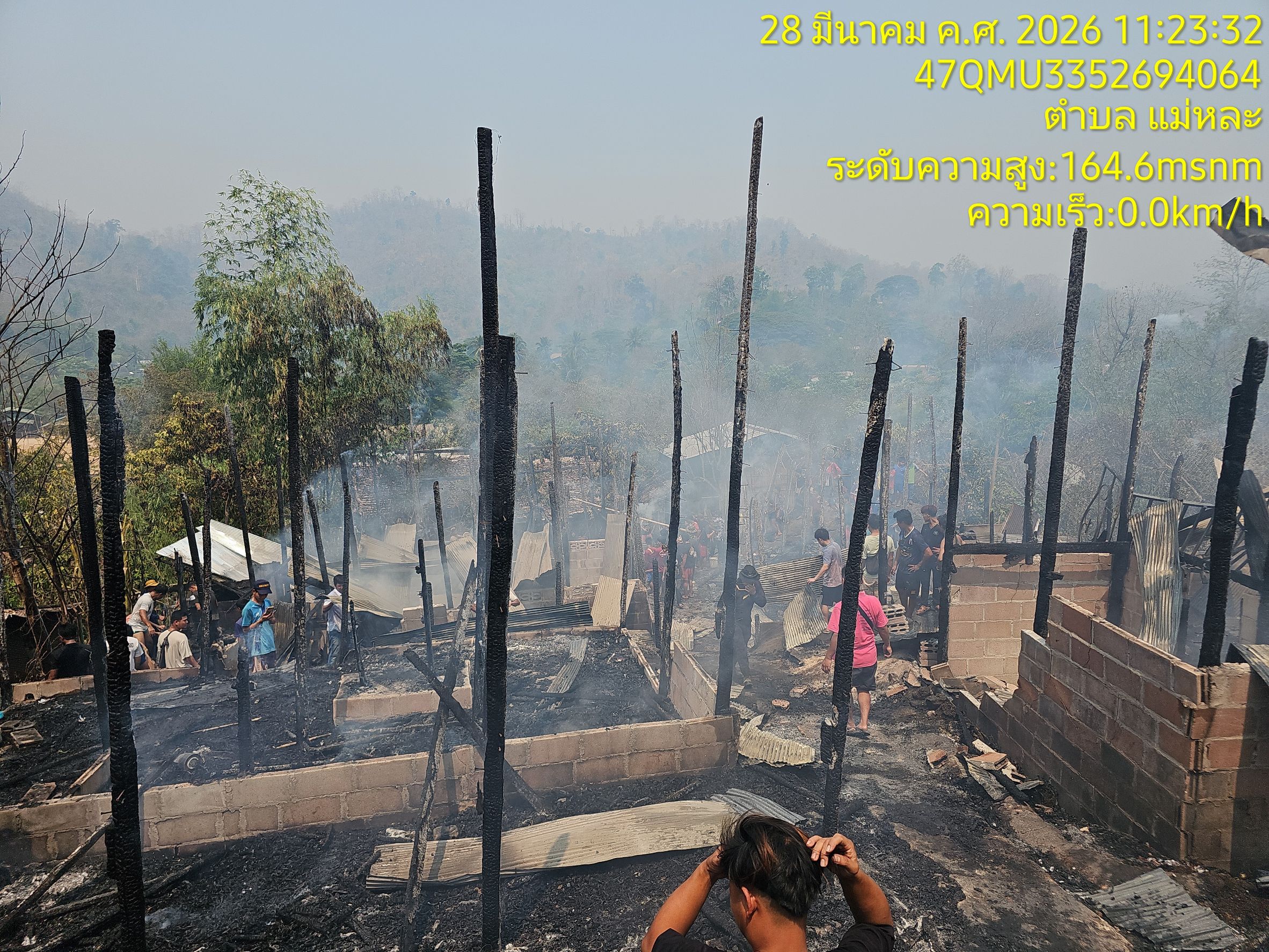 เมื่อ 281030 มี.ค. 69 มว.ตชด.3442 รายงานเหตุเพลิงไหม้จาก จนท.อส.พื้นที่พักพิง ฯ บ.แม่หละ ว่าเกิดเหตุเพลิงไหม้บ้านบริเวณโซน C 1 BB ตรวจพบบ้านถูกเพลิงไหม้จำนวน 8 หลังคาเรือน ดังนี้
