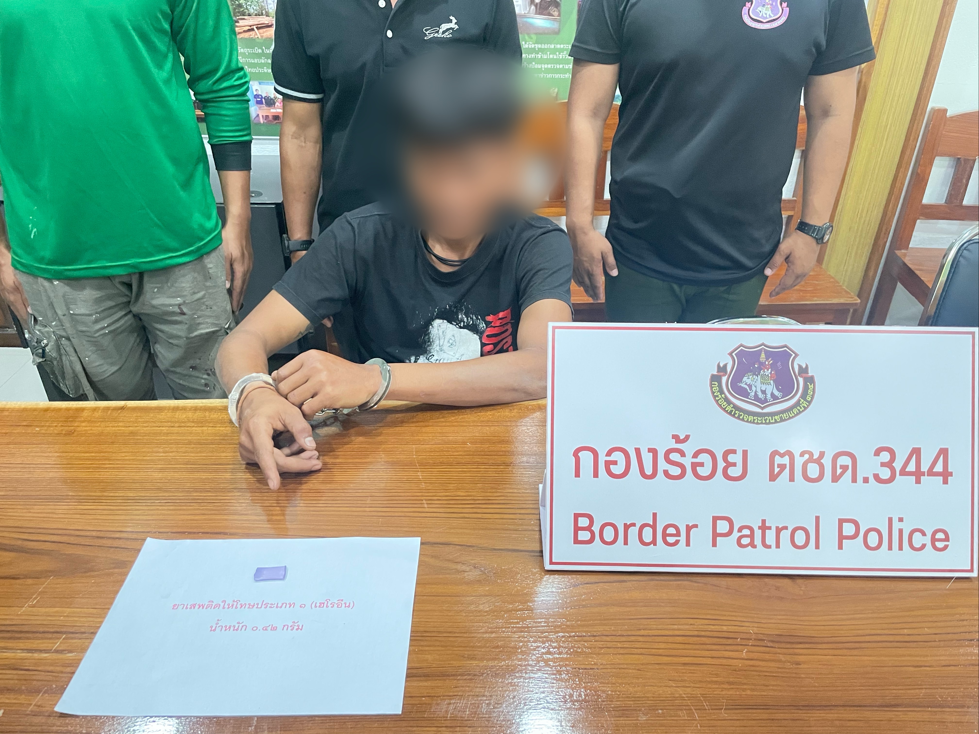สั่งการให้ จนท.ชปข.ร้อย ตชด.344 นำโดย ร.ต.ท.สมจิตต์ สายชลคีรี พร้อม จนท.ชปข.ร้อย ตชด.344 รวม 5 นาย ร่วมกับ สภ.ท่าสองยาง ร่วมกันจับกุม นายพงษ์เทพ คลังพันไพร อายุ 24 ปี เลขบัตรประจำตัวประชาชน 1-6305-00141-59-5 ที่อยู่ 331 ม.5 ต.แม่อุสุ อ.ท่าสองยาง จ.ตาก