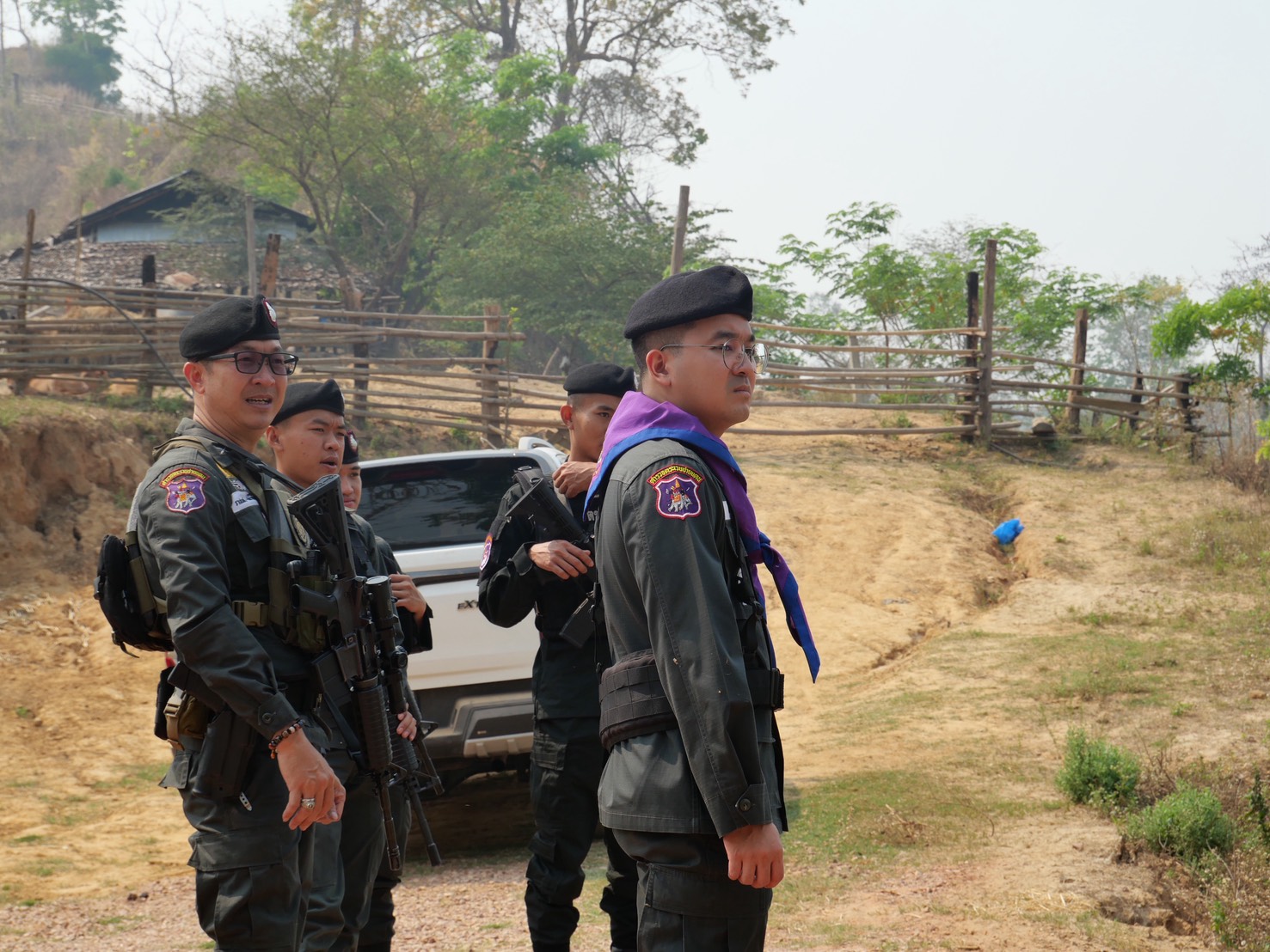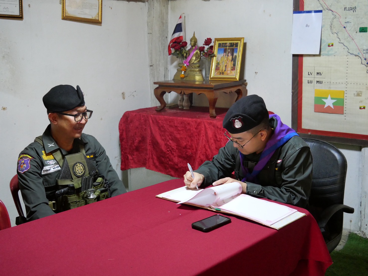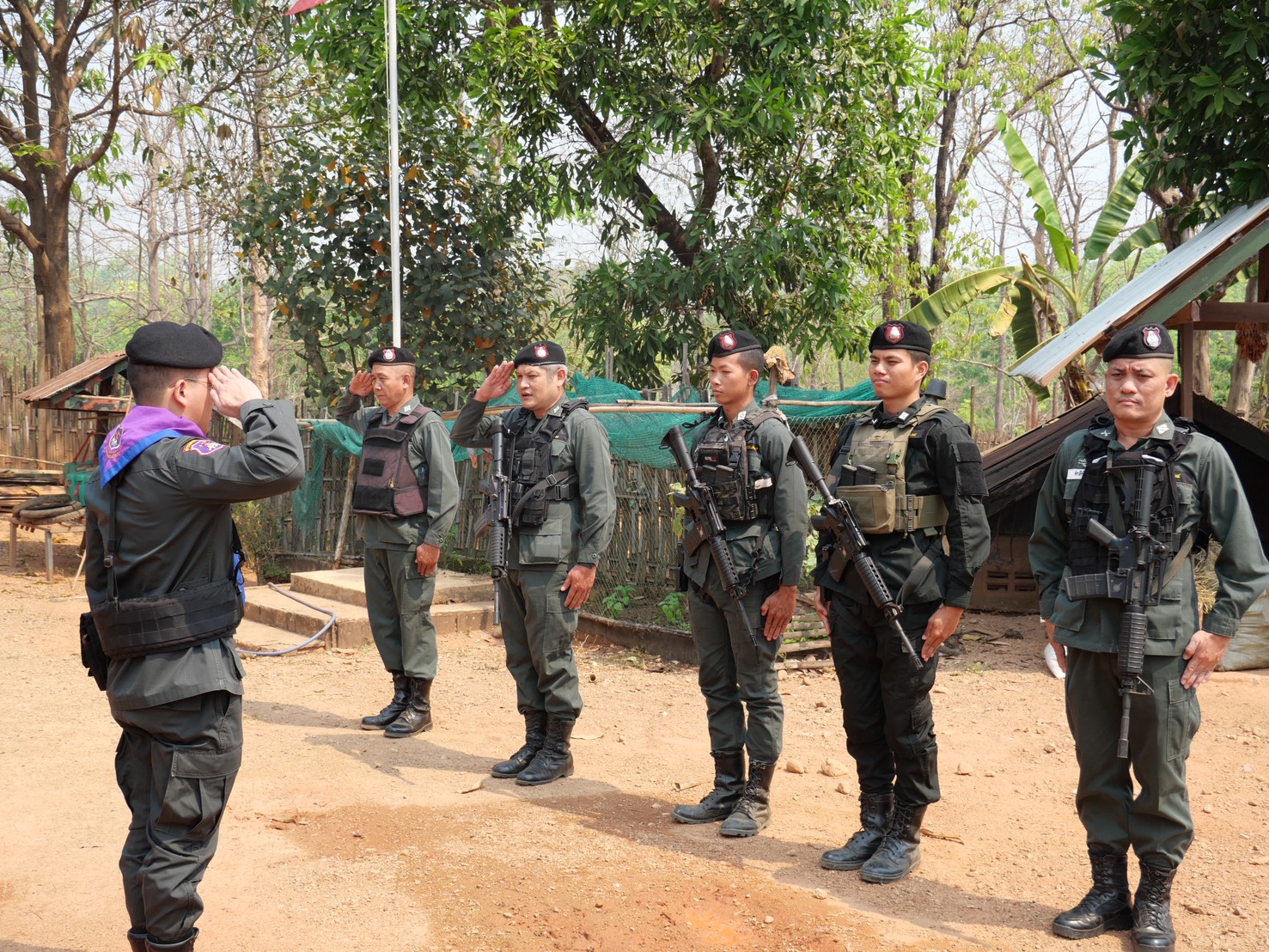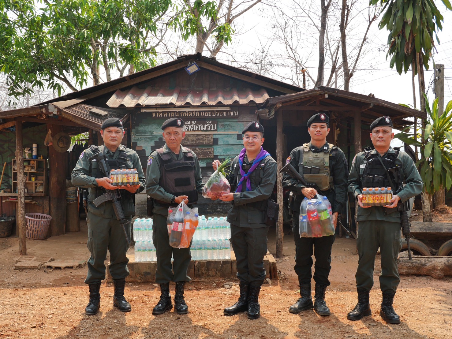 เวลา 10.00 น. ตรวจเยี่ยมฐานปฏิบัติการบ้านแม่หละยาง หมู่ 2 ต.แม่หละ อ.ท่าสองยาง จว.ตาก พบ ด.ต.ราเชนทร์ หล่ายพันธ์ รอง ผบ.มว.ตชด.3442 พร้อมกำลังพลให้การต้อนรับ