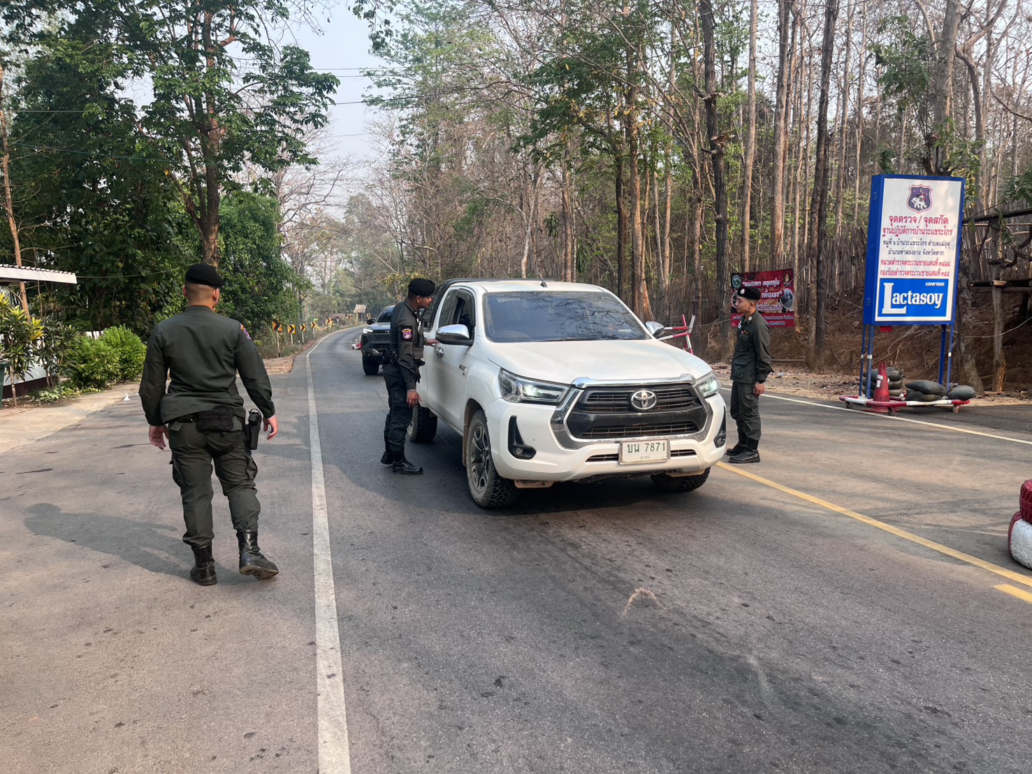 เมื่อ 021000 เม.ย.69 มว.ตชด.3444 จัดให้ จ.ส.ต.วารินทร์ ยาสมุทร์ พร้อมกพ.ใน มว.รวม 5 นาย ตั้งจุดตรวจ/จุดสกัด บนทางหลวงหมายเลข 105 (แม่สอด-แม่สะเรียง) บริเวณหน้าฐานปฏิบัติการบ้านวะแขระโกร ม.6 ต.แม่อุสุ อ.ท่าสองยาง จ.ตาก เพื่อป้องกันปราบปรามอาชญากรรมสำคัญ การลักลอบลำเลียงยาเสพติด สารตั้งต้นและเคมีภัณฑ์,การปราบปรามคนร้ายข้ามชาติและเข้าเมืองโดยผิดกฎหมาย ป้องกันและควบคุมการลักลอบเคลื่อนย้ายสัตว์และซากสัตว์