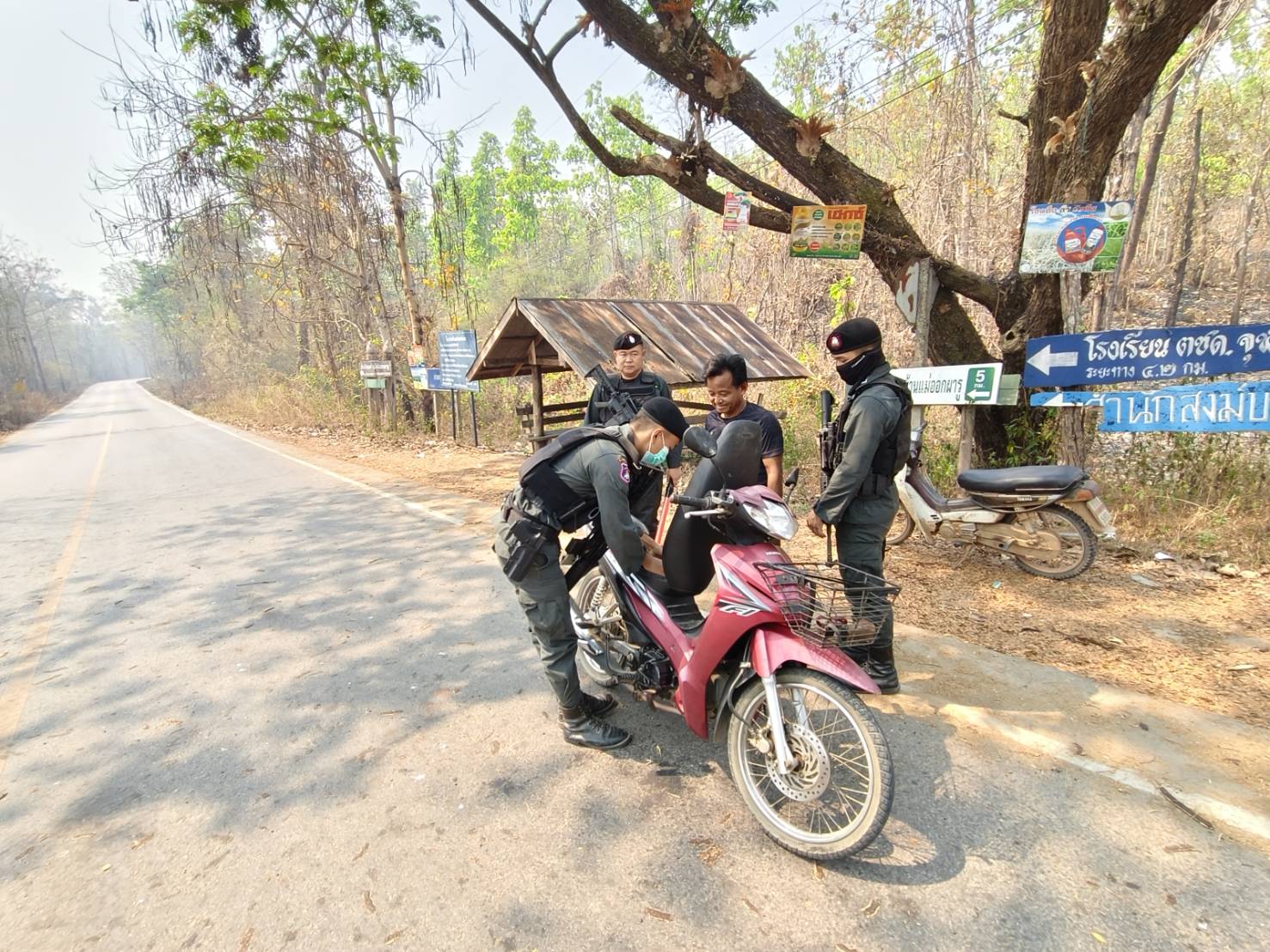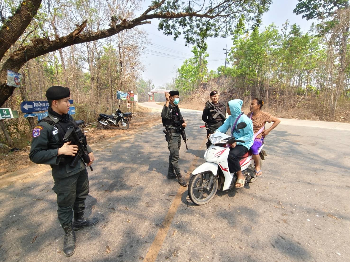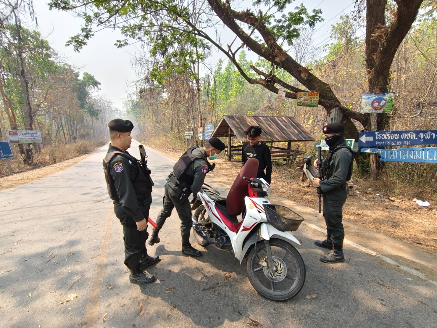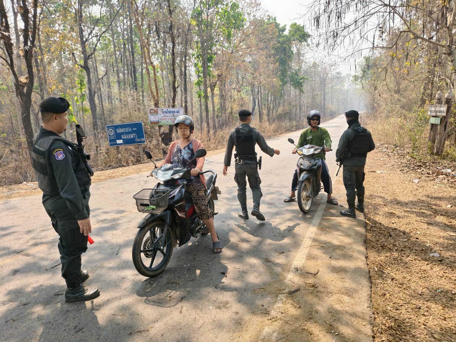 เมื่อ 030900 เม.ย.69 ส.ต.อ.เมธี  ชาลี พร้อมกำลังพล มว.ตชด.3442 รวม 4 นาย ออกตั้งจุดตรวจ/จุดสกัดกั้นชั่วคราว และ ลว.หาข่าว เพื่อป้องปรามการกระทำผิดกฎหมายตาม พ.ร.บ.ที่มีโทษทางอาญา สกัดกั้นกลุ่มขบวนการนำพาแรงงานต่างด้าวหลบหนีเข้าเมืองอย่างผิดกฏหมาย ป้องกันการลักลอบลำเลียงน้ำมันเชื้อเพลิง ,ยาเสพติด สารตั้งต้น-เคมีภัณฑ์ ออกนอกราชอาณาจักร ติดตามกลุ่มสแกมเมอร์ บริเวณทางแยกบ้านแม่หละยาง หมู่ 2  ต.แม่หละ  อ.ท่าสองยาง  จว.ตาก  ผลการปฏิบัติไม่พบการกระทำผิดกฎหมายแต่อย่างใด