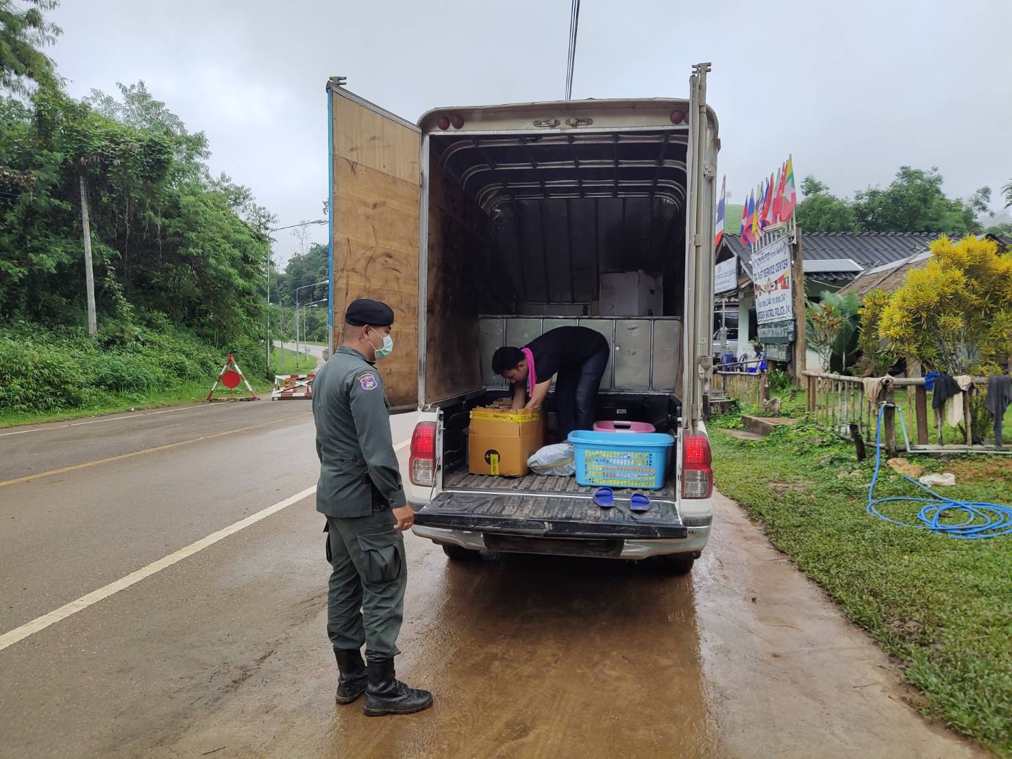 เมื่อ 010830-011600  ก.ย.  63 ชฝต.บ้านแม่อมกิจัด กพ. 3 นาย ตั้งจุดตรวจ-จุดสกัด บนทางหลวงหมายเลข 105 (แม่สอด-แม่สะเรียง) บริเวณหน้าจุดตรวจบ้านแม่อมกิ ม.4 ต.แม่วะหลวง อ.ท่าสองยาง จ.ตาก  เพื่อตรวจค้นการลักลอบขนสิ่งผิดกฏหมาย สกัดกั้นการลักลอบเข้าเมืองโดยผิดกฏหมายของ  แรงงานต่างด้าว และให้คำแนะนำประชาสัมพันธ์การป้องกันโรคไวรัสโคโรนา 2019 (COVID - 19)