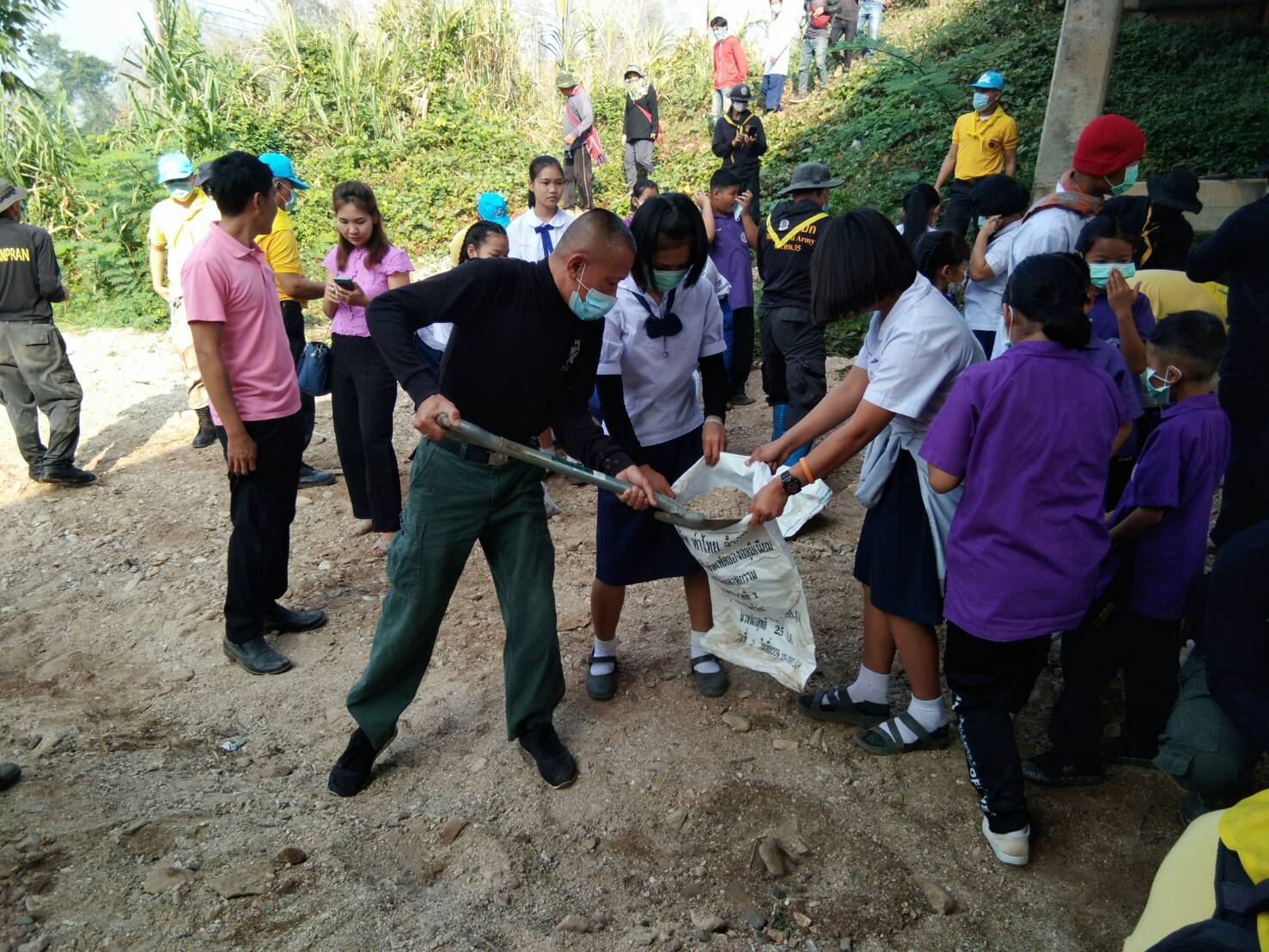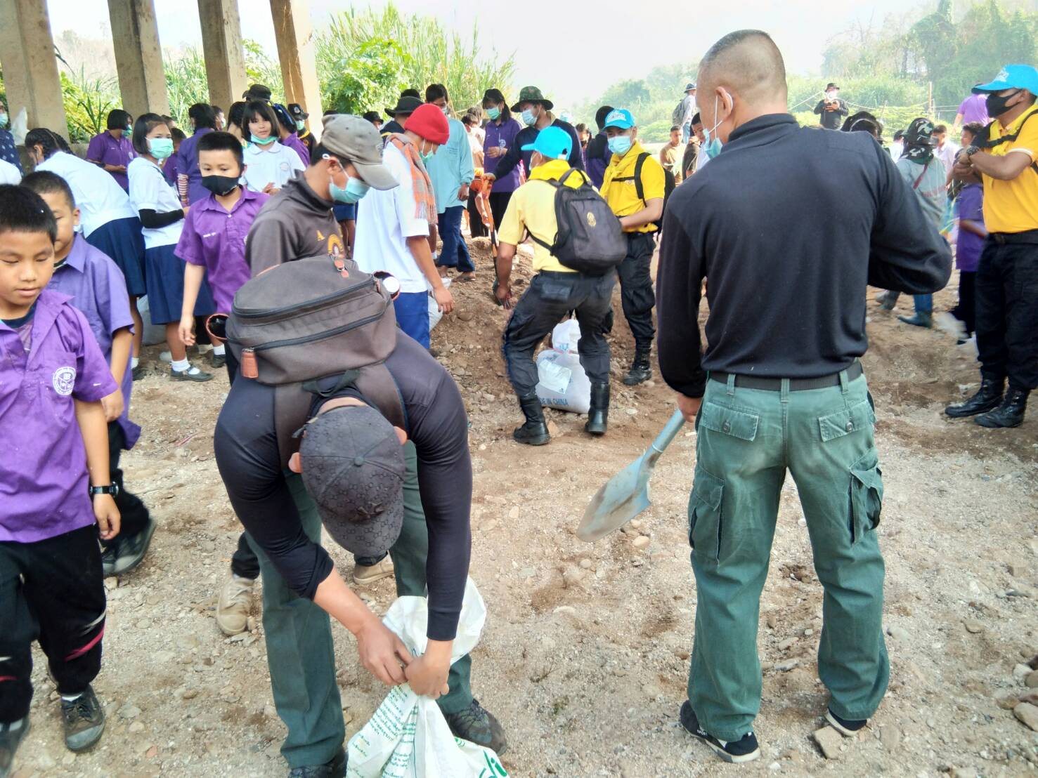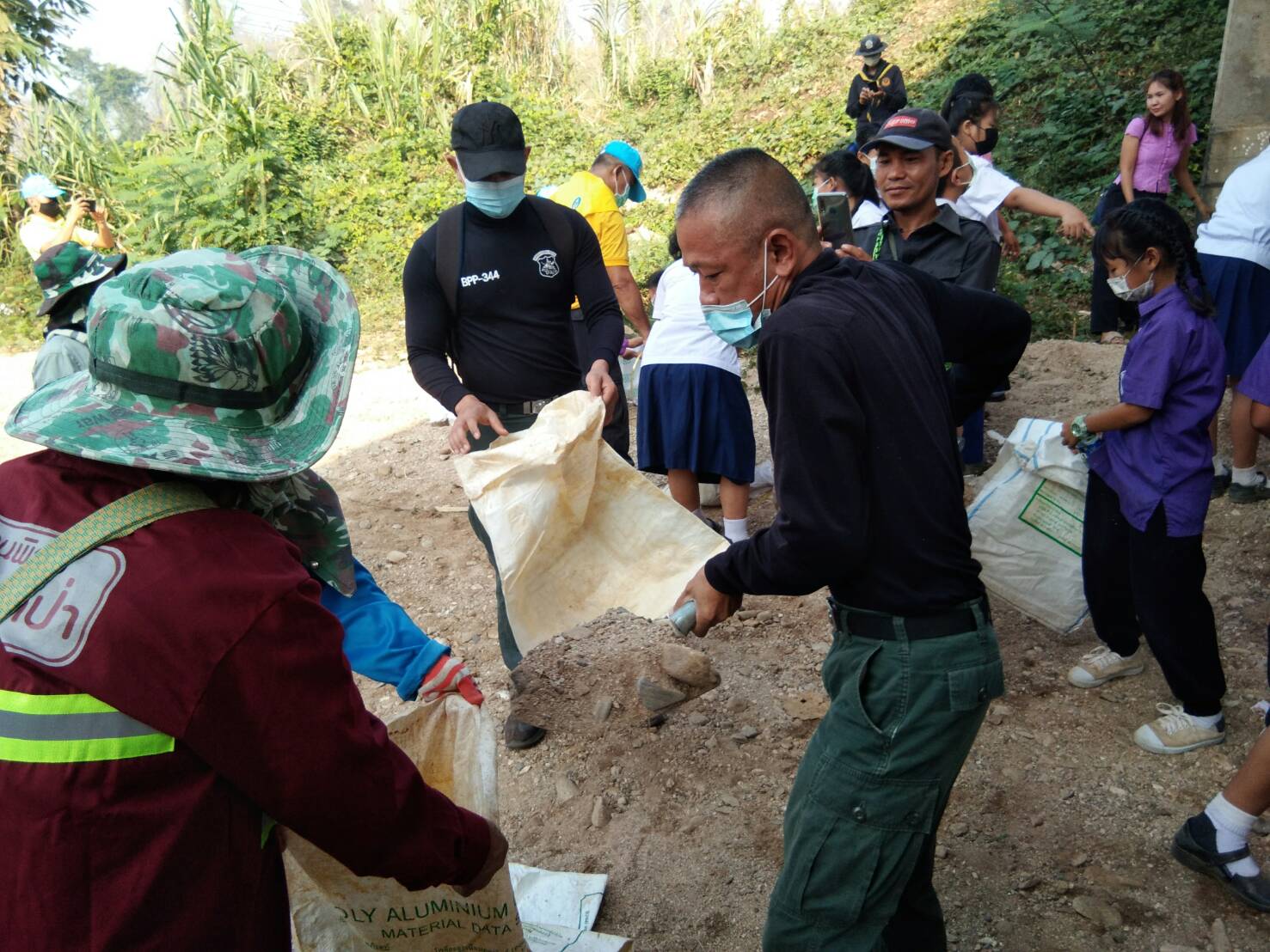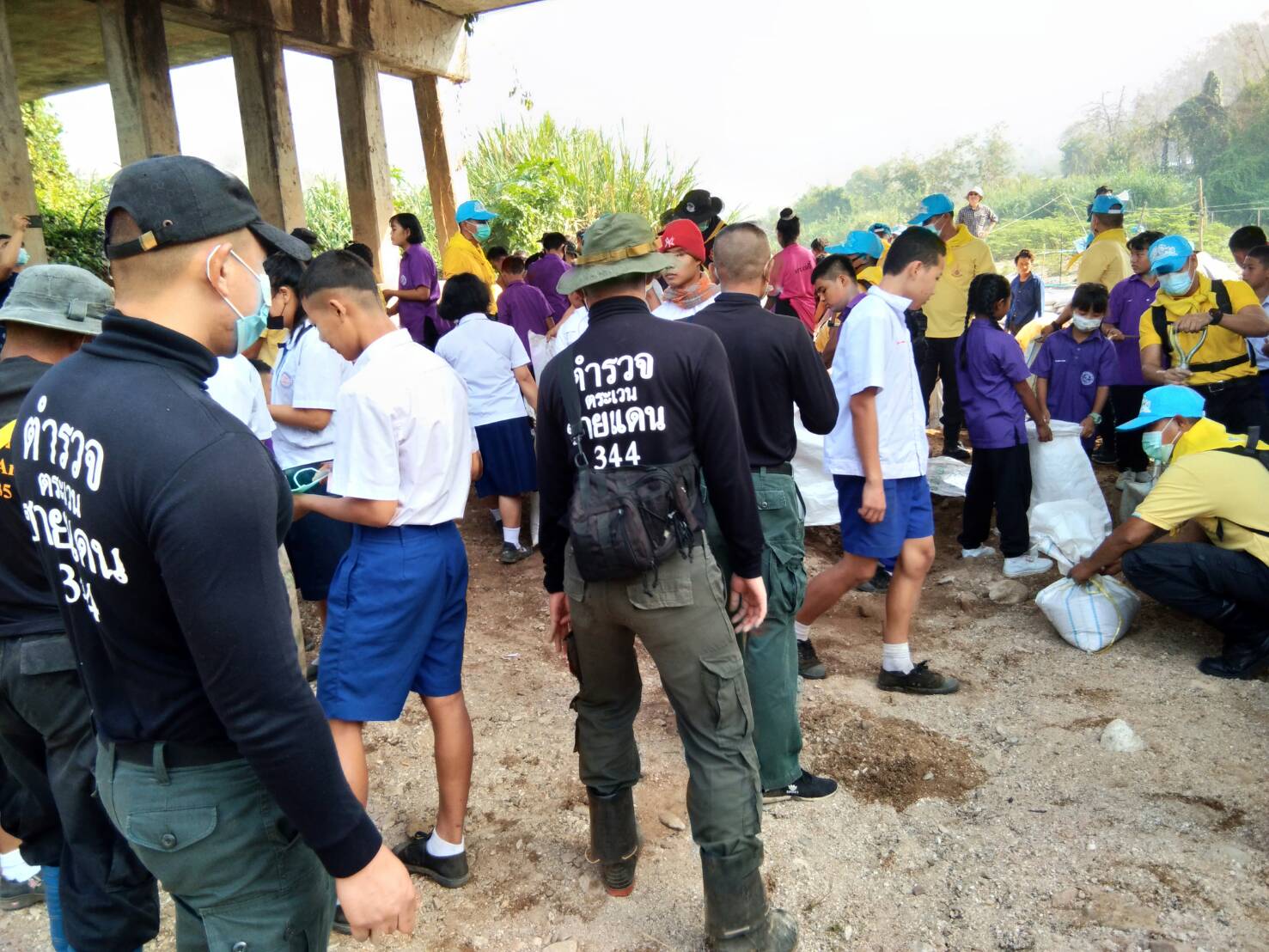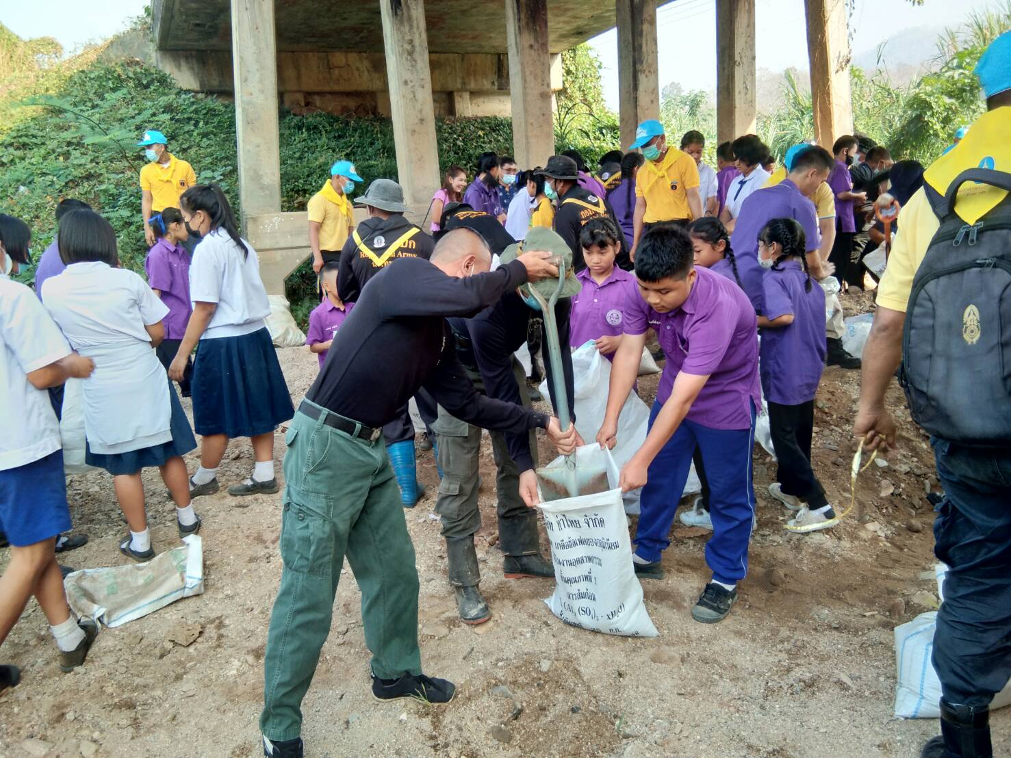 รอง ผบ.ร้อยตชด.344 พร้อม จนท.ฝอ.ร่วมสร้างฝายชะลอน้ำ