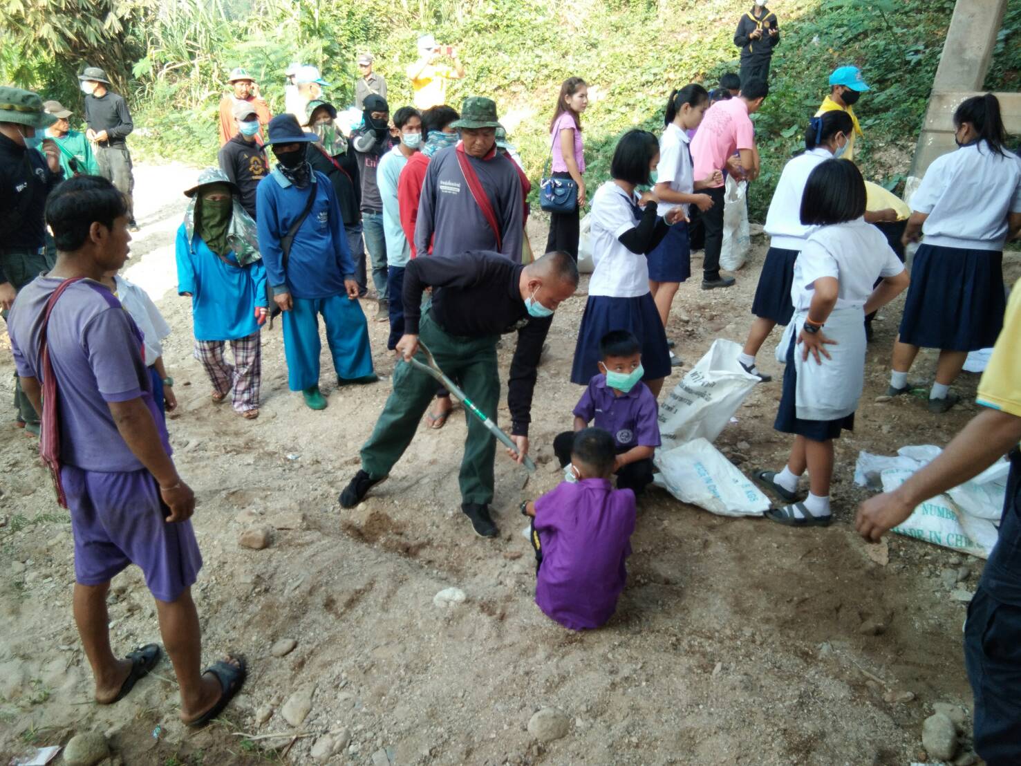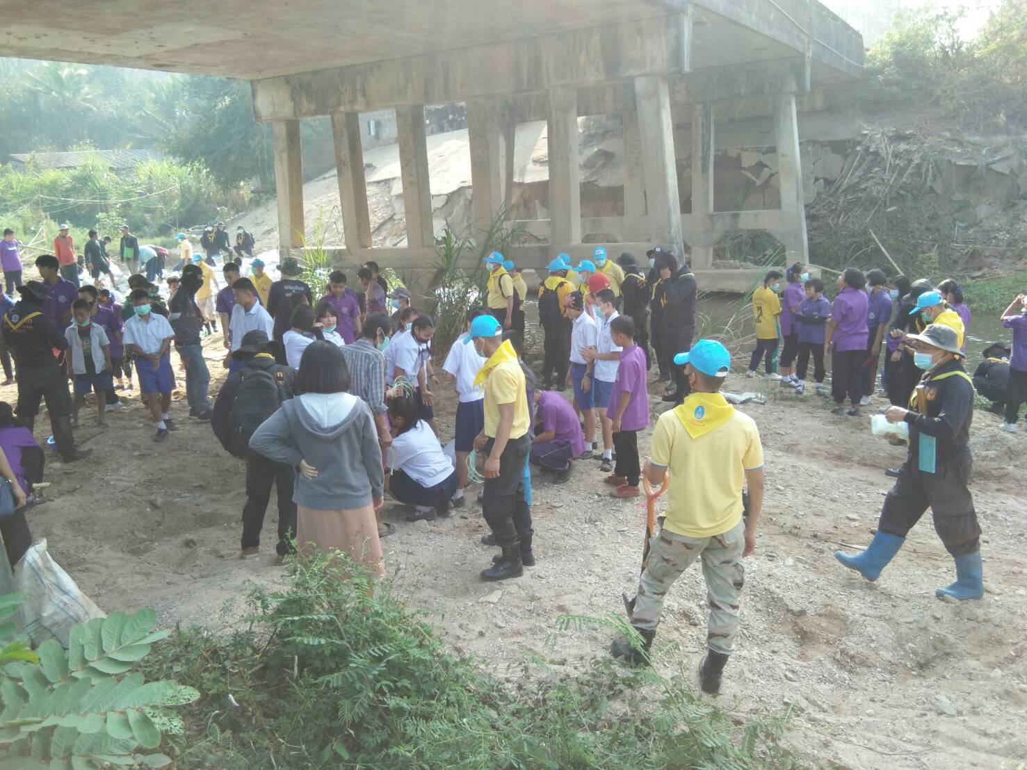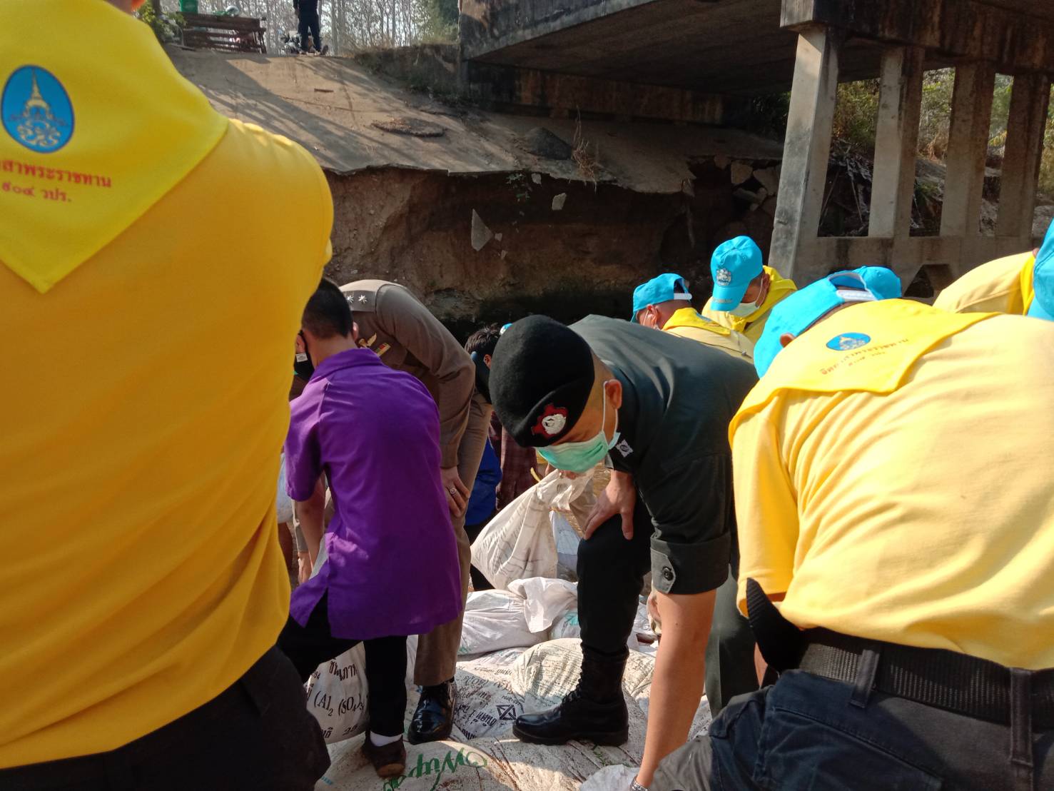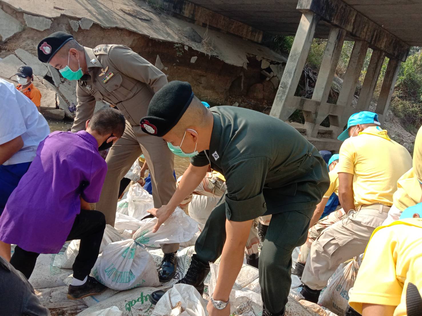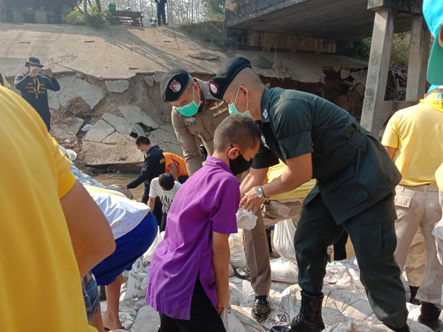 รอง ผบ.ร้อยตชด.344 พร้อม จนท.ฝอ.ร่วมสร้างฝายชะลอน้ำ