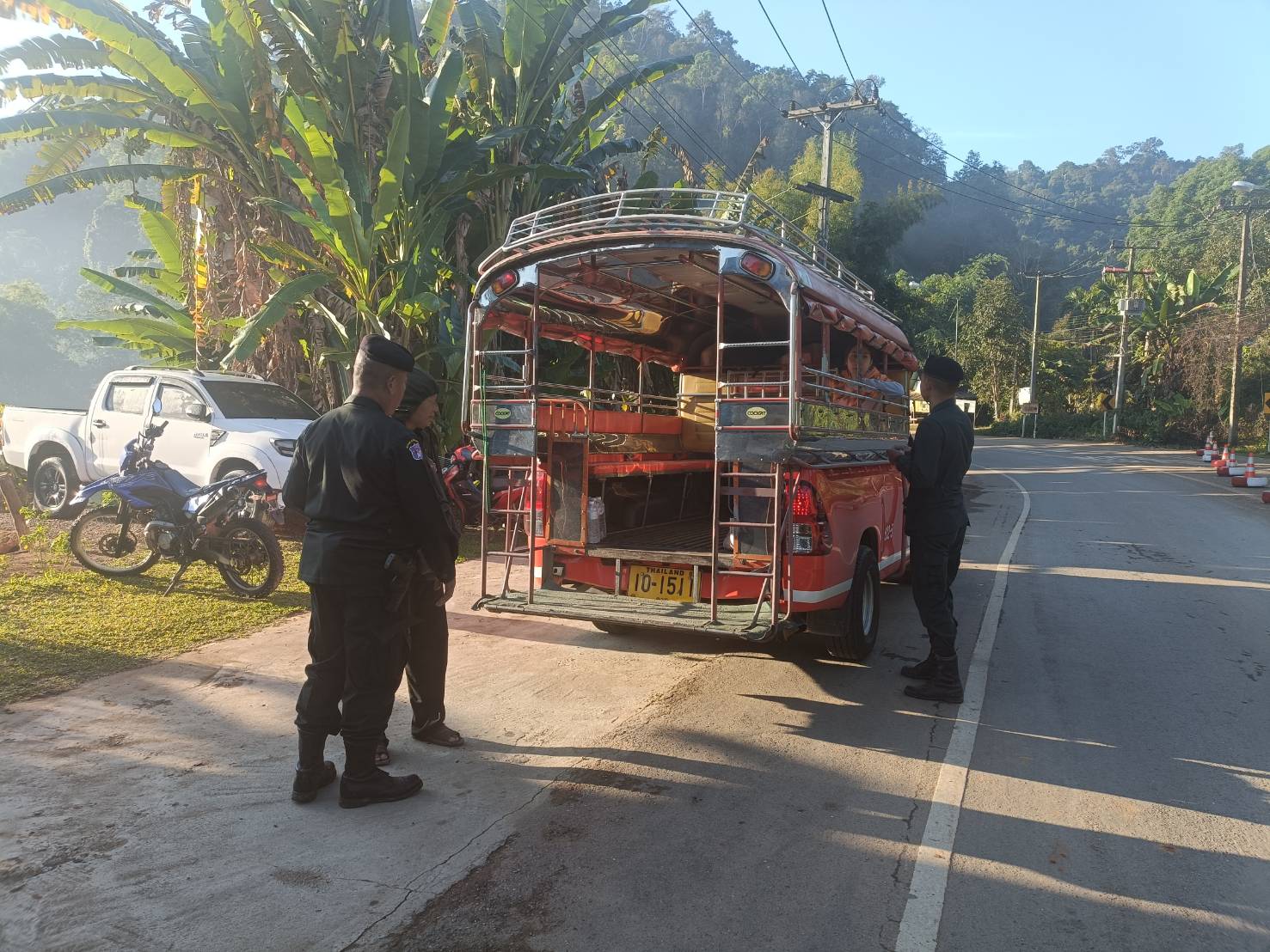 เมื่อ 300800-310759 ธ.ค. 66 ชฝต.บ้านแม่อมกิ จัด กพ.พร้อมชุดจิตอาสา รวม 3 นายทำการตั้งจุดตรวจ/จุดสกัด และ จุดบริการประชาชนและนักท่องเที่ยว ช่วงเทศกาลปีใหม่ 2567 บนถนนหลวงหมายเลข 105 (แม่สอด-แม่สะเรียง) บริเวณหน้าจุดตรวจบ้านแม่อมกิ ม.4 ต.แม่วะหลวง อ.ท่าสองยาง จ.ตาก เพื่ออำนวยความสะดวกให้กับยานพาหนะที่สัญจรไป-มา และ ตรวจค้นการลักลอบขนสิ่งผิดกฏหมาย สกัดกั้นการลักลอบเข้าเมืองโดยผิดกฏหมายของแรงงานต่างด้าว