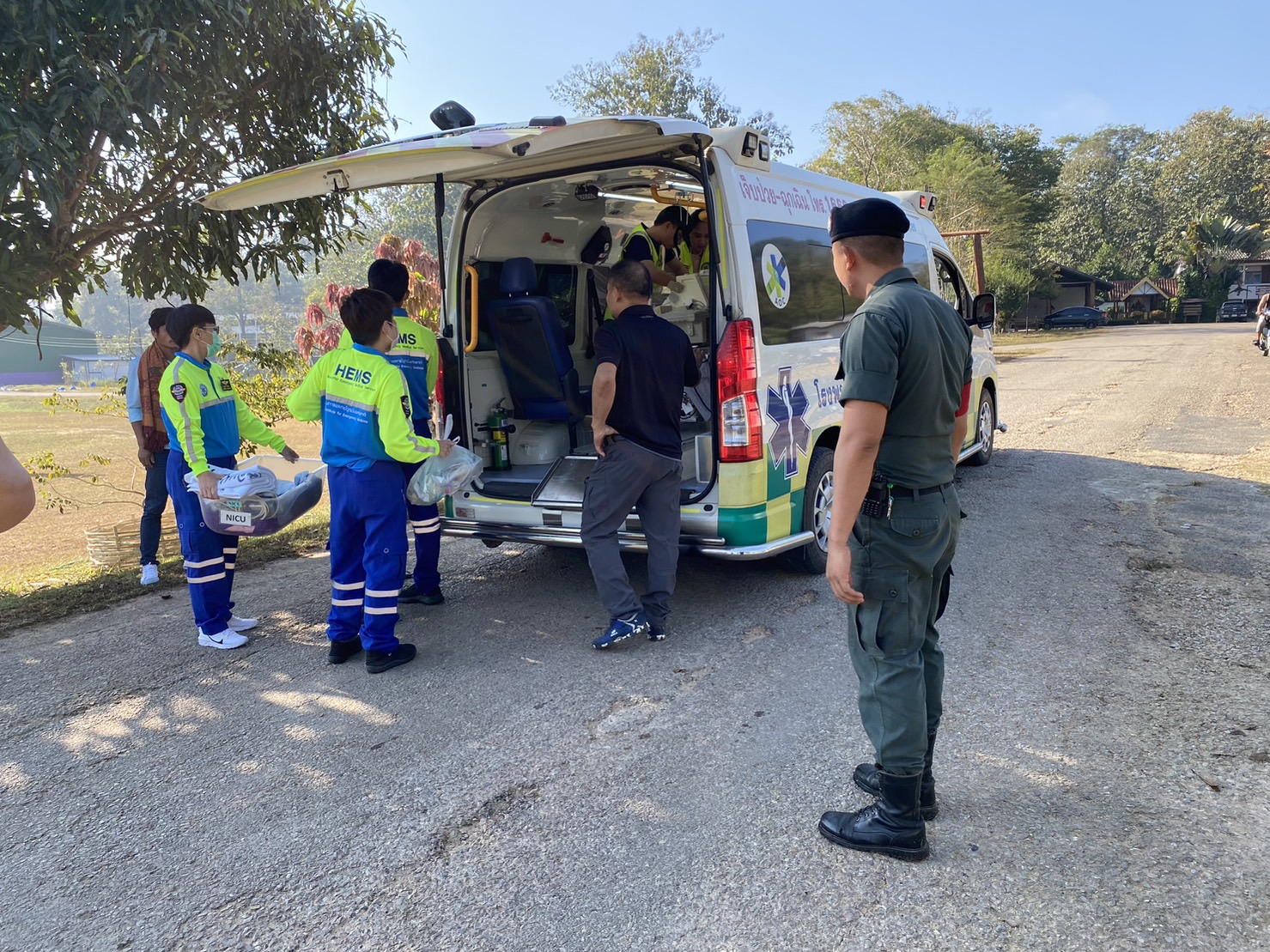 เมื่อ 190930 ม.ค.67 ว่าที่ พ.ต.ท.ฐัตพล  สายโรจน์ ผบ.ร้อย ตชด.344 มอบหมายให้ จนท.มว.พท. ร้อย ตชด.344 และ จนท.นำอากาศยานฯ อำนวยความสะดวก ทีม Sky Doctor ที่ได้เดินทางมารับคนไข้ฉุกเฉิน (เด็กทารกแรกเกิด) ของ รพ.ท่าสองยาง อ.ท่าสองยาง จ.ตาก ไปยังโรงพยาบาลพุทธชินราช จ.พิษณุโลก ณ สนาม ฮ.ชั่วคราว ร้อย ตชด.344 ต.แม่ต้าน อ.ท่าสองยาง จ.ตาก