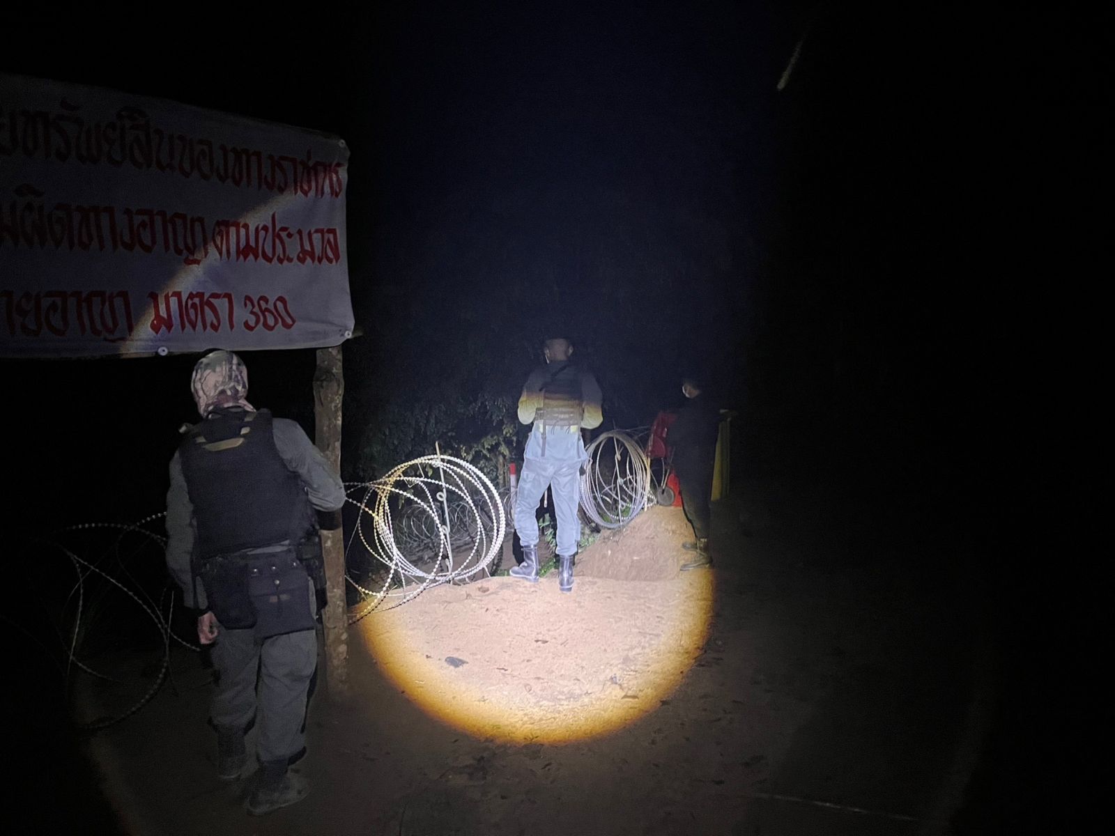 เมื่อ 282000 - 282230 ม.ค.67 มว.ตชด.3443 จัดให้ ส.ต.อ.วาริทร์ ยาสมุทร์ พร้อม กพ. รวม 4 นาย ออกลาดตระเวนตรวจพื้นที่รับผิดชอบ บริเวณช่องทาง /ท่าข้ามตามธรรมชาติ ม.1 ,ม.2 ต.แม่ต้าน อ.ท่าสองยาง จ.ตาก ตามมาตรการเฝ้าระวังป้องกัน ,ควบคุมการแพร่ระบาดโรคติดเชื้อไวรัสโคโรนา 2019 (COVID-19) ,ป้องปรามการกระทำผิดตาม พ.ร.บ. ที่มีโทษทางอาญา , พิสูจน์ทราบ กกล.ต่างชาติรุกล้ำอธิปไตย ,ตรวจสอบการลักลอบ เข้า-ออก ของบุคคล/ พาหนะ/ สิ่งของ/ พืชผลทางการเกษตร และ ขบวนการนำพาแรงงานต่างด้าวหลบหนีเข้าเมืองโดยผิดกฎหมาย