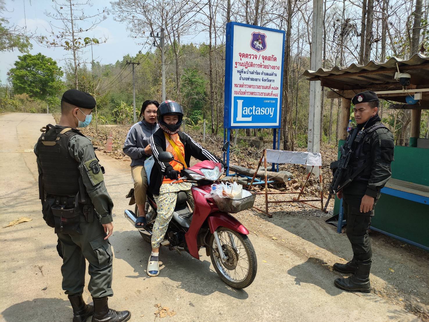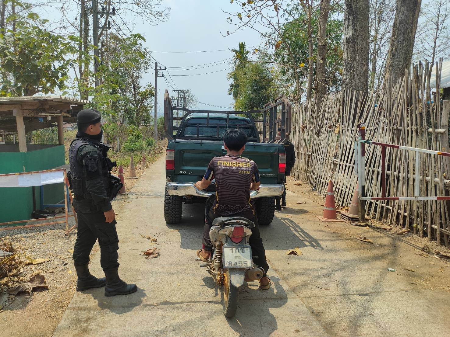 เมื่อ 221100 - 221300 มี.ค. 67 มว.ตชด.3443 จัดให้ ส.ต.อ.เจษฎา ธนะปัด พร้อม กพ.รวม 3 นาย ตั้งจุดตรวจ/จุดสกัด หน้าฐาน ปบ.การฯ ม.2 ต.แม่ต้าน อ.ท่าสองยาง จ.ตาก เพื่อป้องกัน/ป้องปราม/ตรวจสอบ การลักลอบ เข้า-ออก ของบุคคล/พาหนะ/สิ่งของ/พืชผลทางการเกษตร, ขบวนการนำพาแรงงานต่างด้าวหลบหนีเข้าเมืองโดยผิดกฎหมาย การรุกล้ำอธิปไตยของ กกล. ต่างชาติ และการกระทำผิดต่างๆที่เกิดขึ้นใน พท. รับผิดชอบ