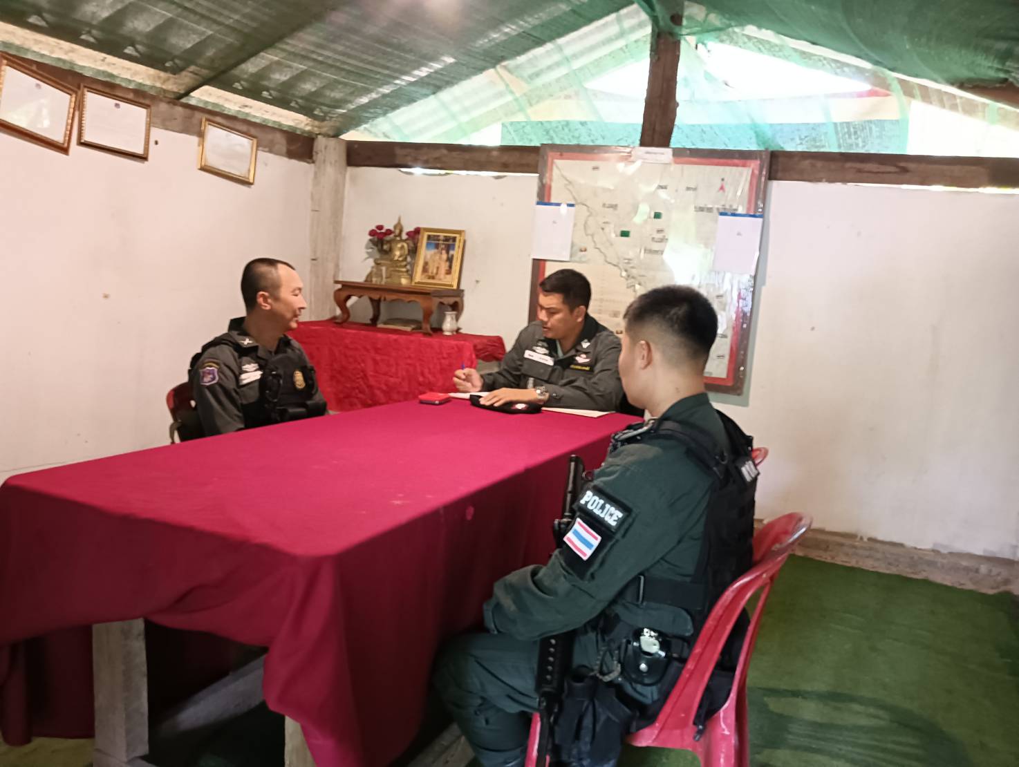 เมื่อ 091030 มิ.ย.67 พ.ต.ท.ฐัตพล สายโรจน์ ผบ.ร้อย ตชด.344 เดินทางมาตรวจเยี่ยมฐานปฏิบัติการบ้านแม่หละยาง หมู่ 2 ต.แม่หละ อ.ท่าสองยาง จว.ตาก พบ ด.ต.ราเชนทร์ หล่ายพันธ์ รองฯรรท.ผบ.มว.ตชด.3442 พร้อมกำลังพลให้การต้อนรับ และได้สั่งการให้ปฏิบัติดังนี้