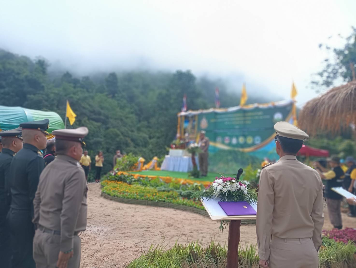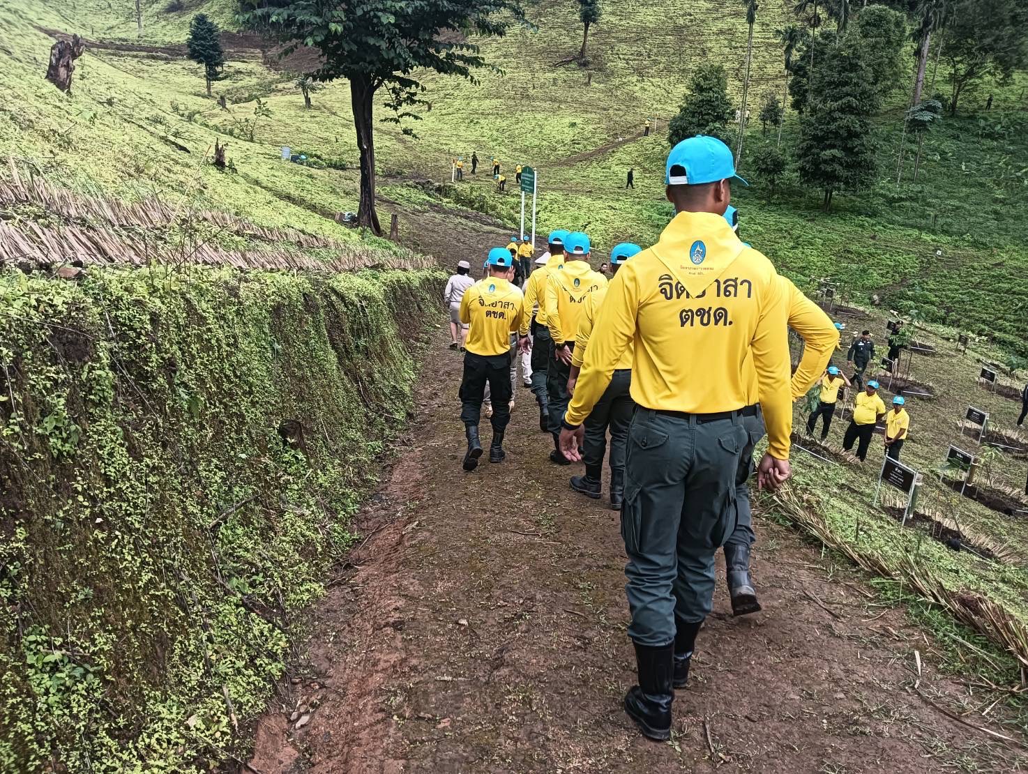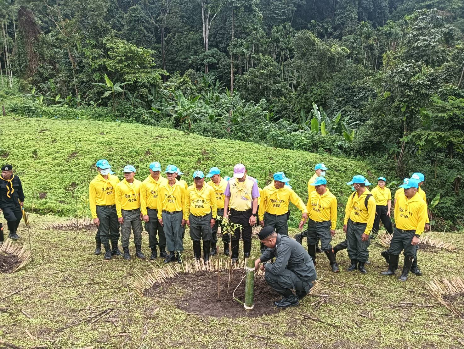 เมื่อ 120900 ก.ค.67 พ.ต.ท.ฐัตพล  สายโรจน์ ผบ.ร้อย ตชด.344 พร้อม กพ ชุดจิตอาสา รวม 8 นาย ร่วมกับหัวหน้าส่วนราชการ ผู้แทน จิตอาสา ประชาชน และภาคส่วนต่างๆ ร่วมกันปลูกป่าเฉลิมพระเกียรติ 72 พรรษา พระบาทสมเด็จพระเจ้าอยู่หัวฯ บริเวณพื้นที่ปลูก บ้านแม่หละคี หมู่ 12 ต.แม่หละ อ. ท่าสองยาง จ.ตาก จำนวน 26.8 ไร่ โดยนำต้นไม้ปลูกจำนวน 2,672 ต้น ประกอบด้วยพันธุ์ไม้ป่า ไม้ผล ไม้ดอก หลากหลายชนิด ได้แก่ แดง อินทนิล ยางนา มะค่าโมง มะขามป้อม ประดู่ หว้า หมาก ราชพฤกษ์ และไผ่ซาง รวมทั้งหญ้าแฝก อีกจำนวน 50,000 กล้า โดยมี พลเอก กัมปนาท องคมนตรี เป็นประธานในพิธี